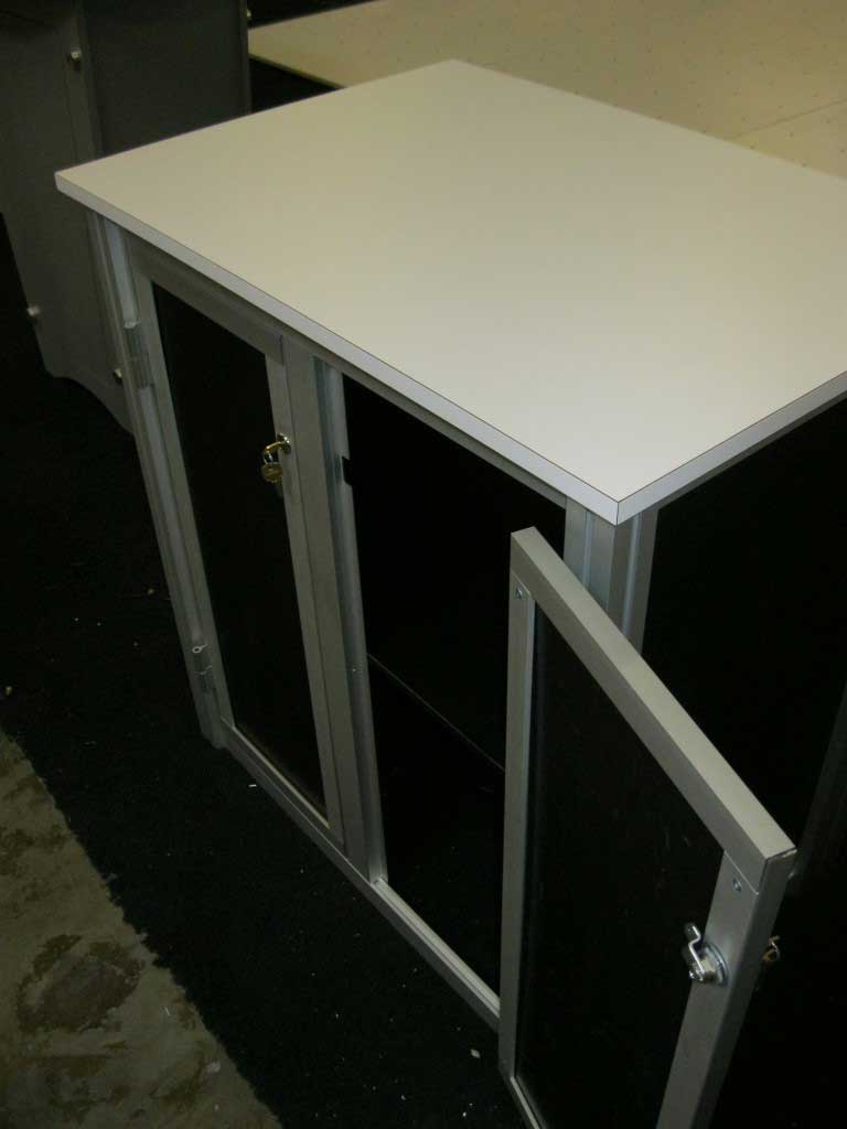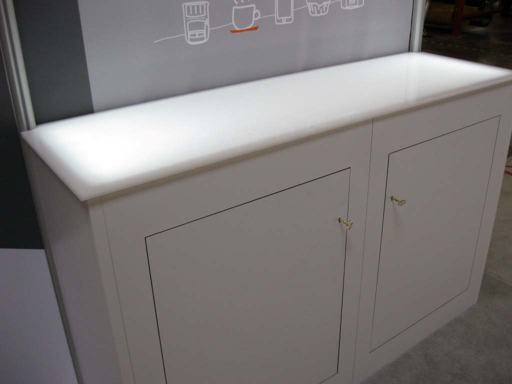 Custom Backlit Counter with Locking Doors, Laminate Countertop,