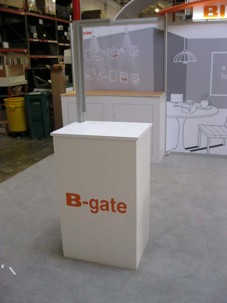 Luminators, Custom Podium, and Monitor Mounts. Converts to 10x10