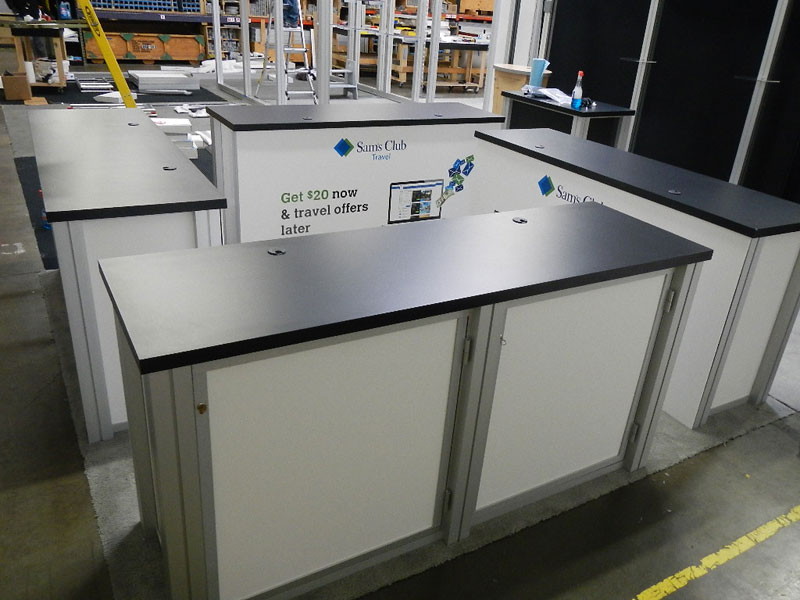 Counter, Extrusion Ring, (3) Double-Sided Graphic Kiosks, (6)