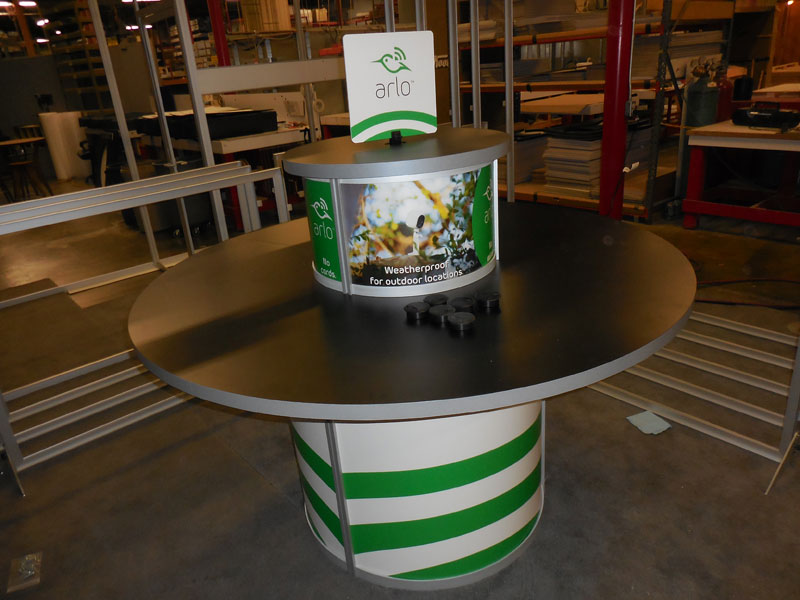 Custom Two-sided Display with Counters and Round Tension Fabric