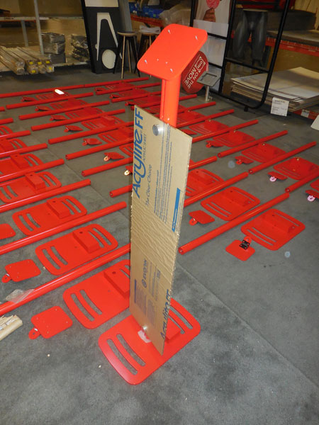 with Red Finish, Steel Base, Lockbox, Standoff Graphic, and Tilt