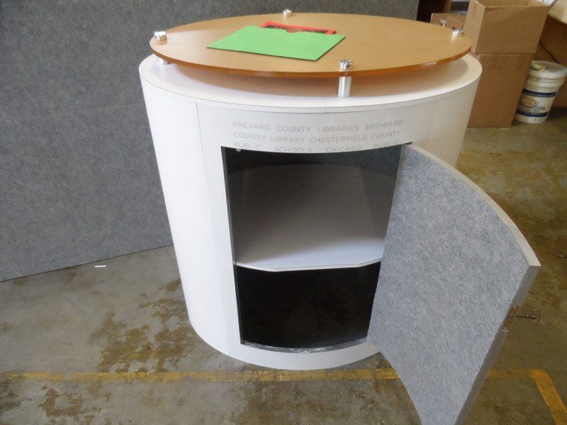 Custom Modular Pedestal with Storage and a Plex Counter Top