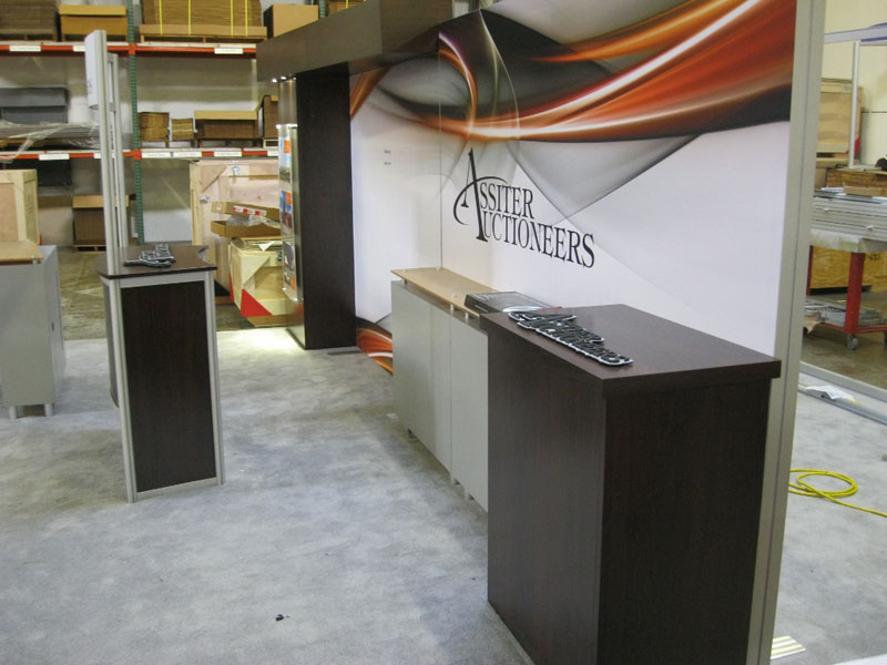 Designs Hybrid Exhibit with Closet Storage and a MOD-1183 Reception Counter