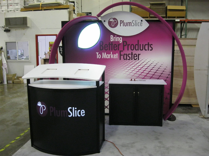 Custom Table Top Display with Tension Fabric and Large Monitor