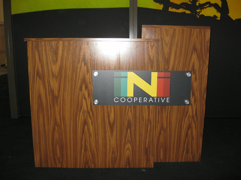 ECO-CUSTOM (4) 10X10 with Custom Eco Panel Podiums, SEG Fabric
