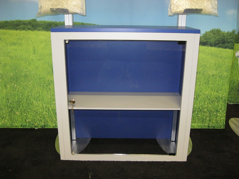 Fabric Panel Display with Laminate Showcase Tower and Counter