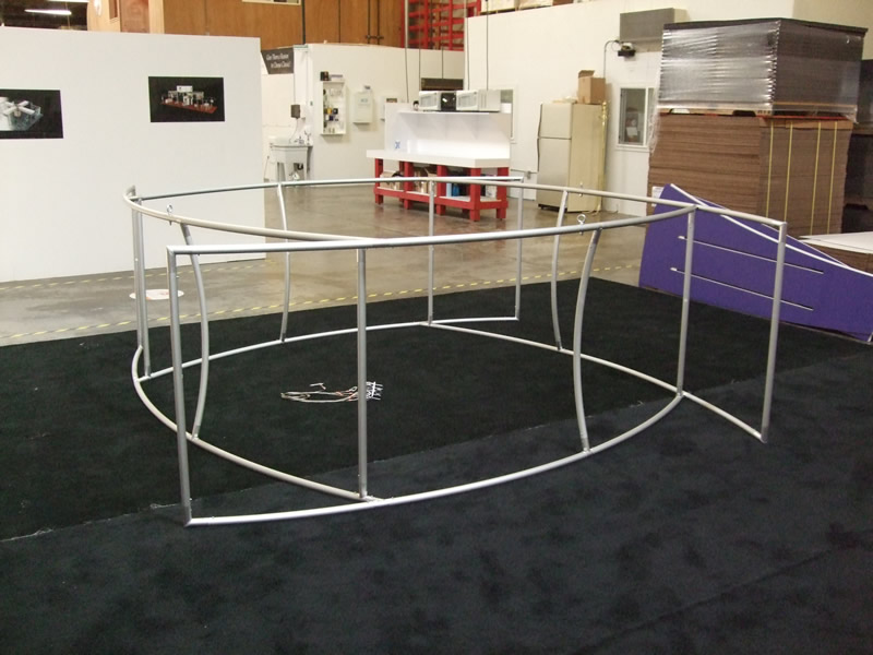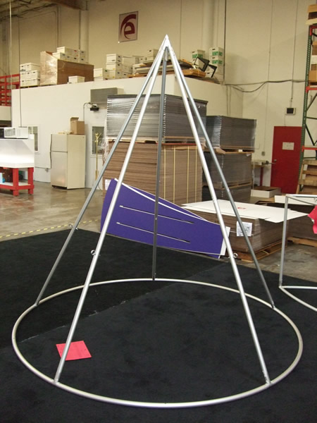RENTAL Exhibit: 16 ft Triangular Tower with Storage, Tapered Counters, and Aero Hanging Sign Structure
