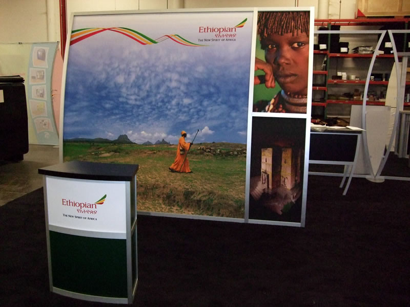Trade Show Kiosks and Counters with Tension Fabric Header