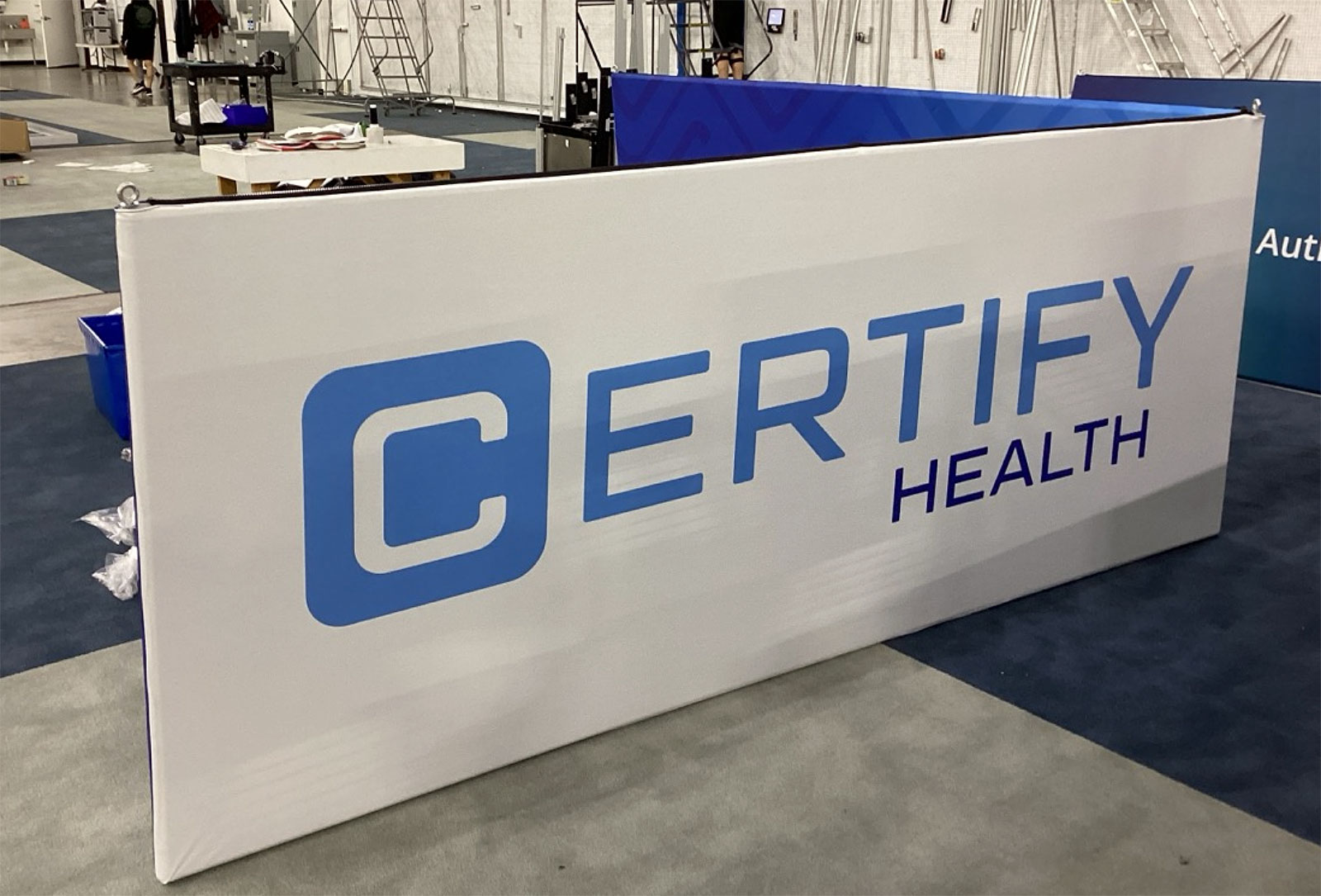 Backlit Reception Counter, SEG Fabric Graphics, and Pillowcase
