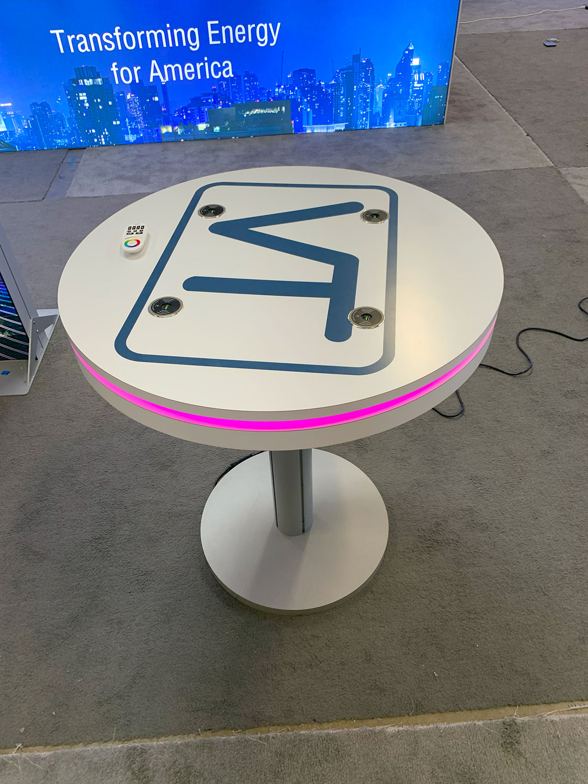 Charging Station Table, 10' x 10' x 3' Square Hanging Sign, SEG