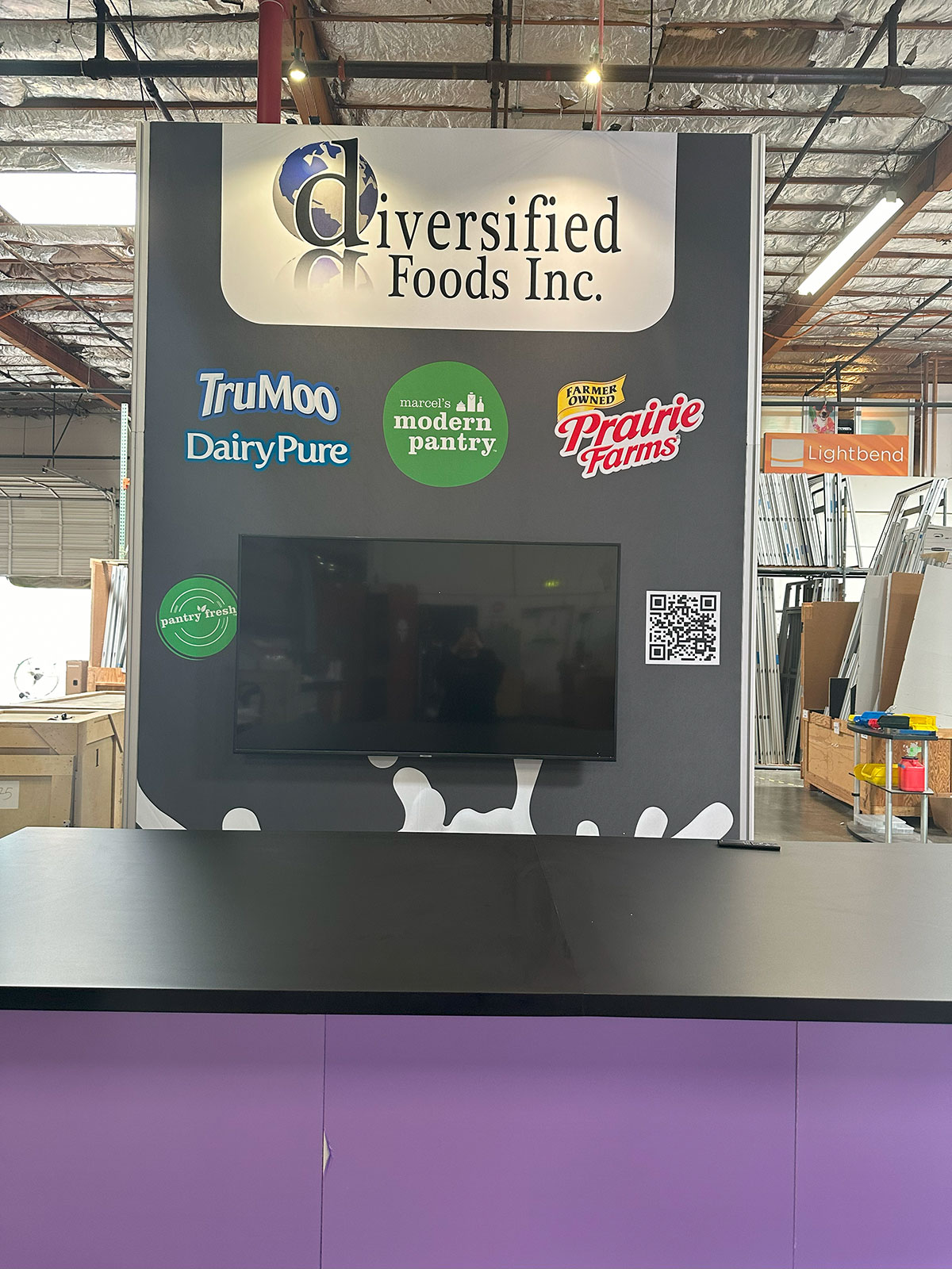 Large Monitor Mount, 65" Monitor, and SEG Fabric Graphics