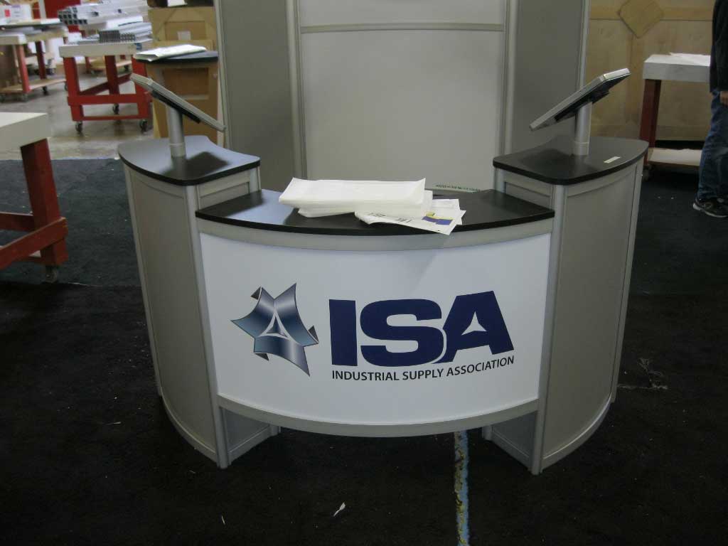 eSmart Eco-4073 Island Exhibit ECO-38C Curved Counter with Storage ECO-38C Curved Counter with Storage Small eSmart Trade Show Pedestal 20 ft. Reconfigured Version 10 ft. Reconfigured Version