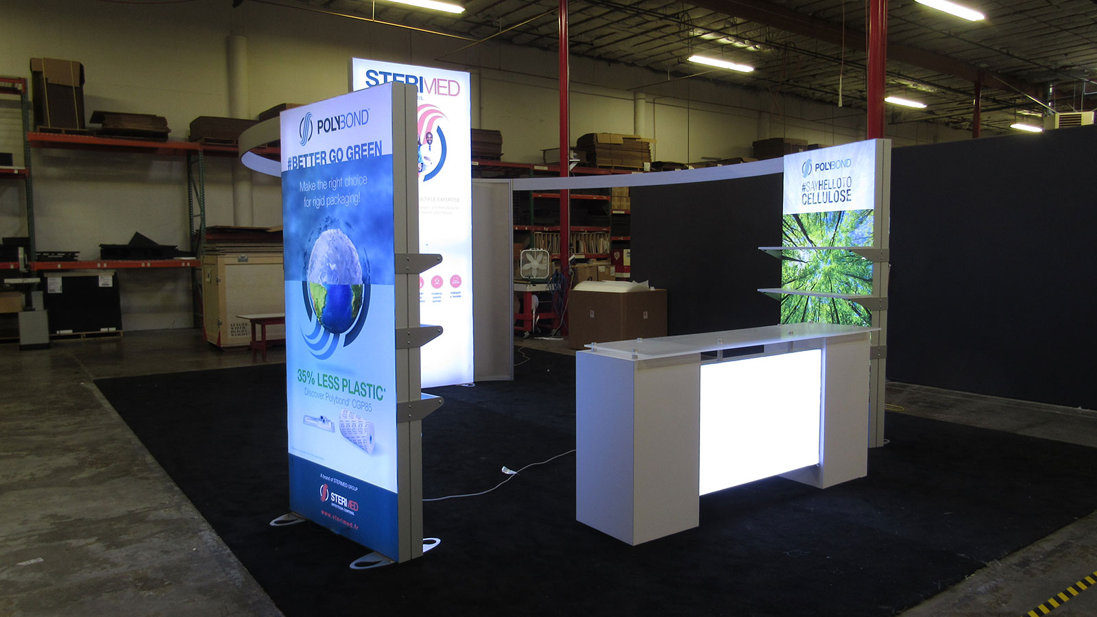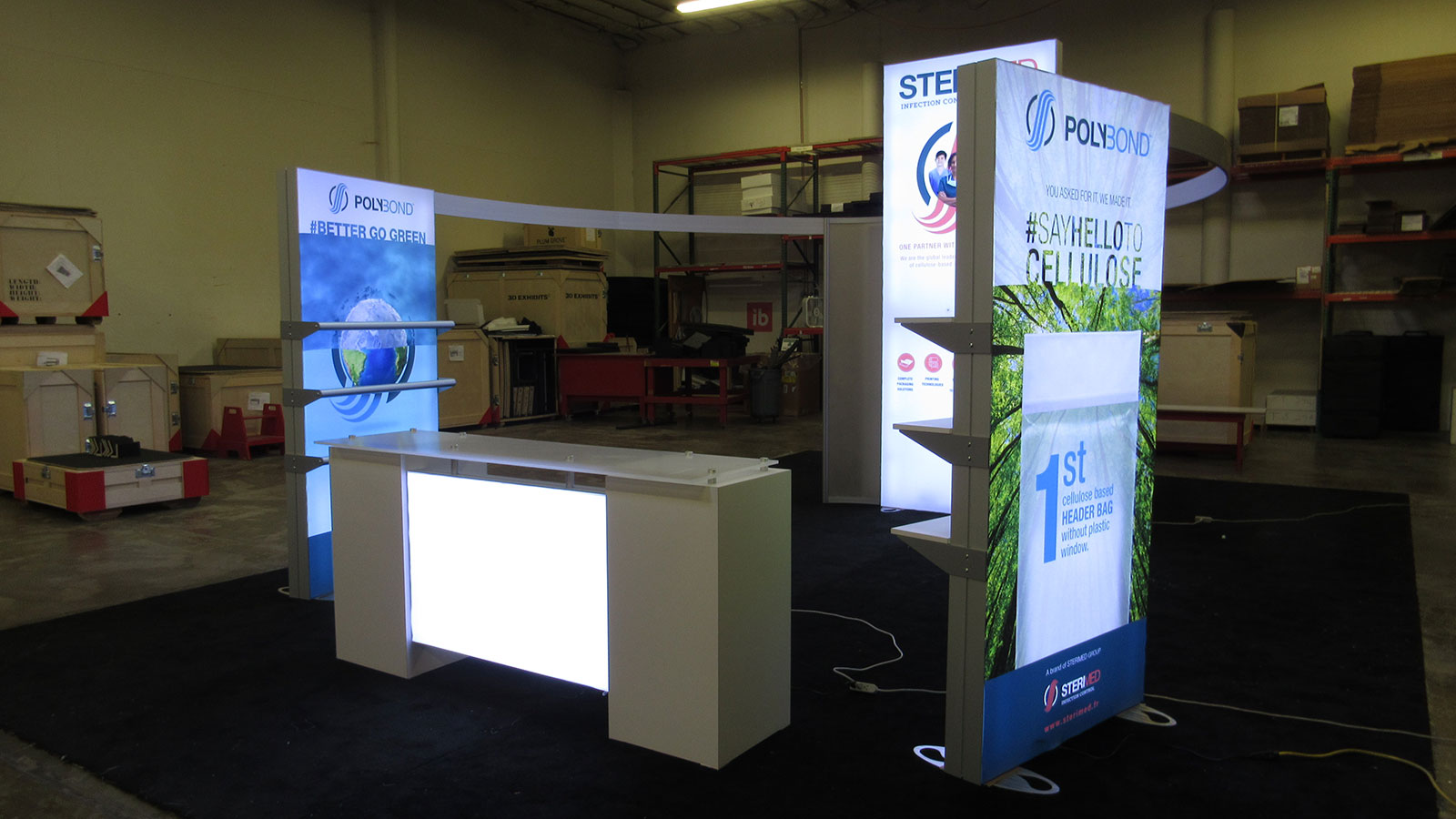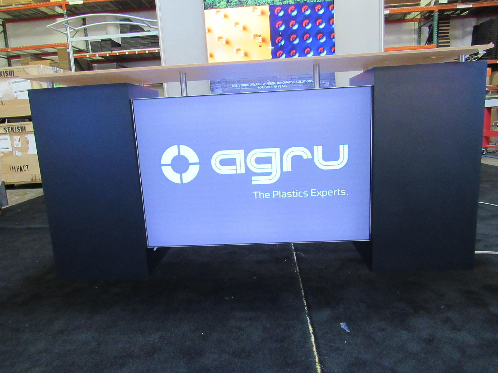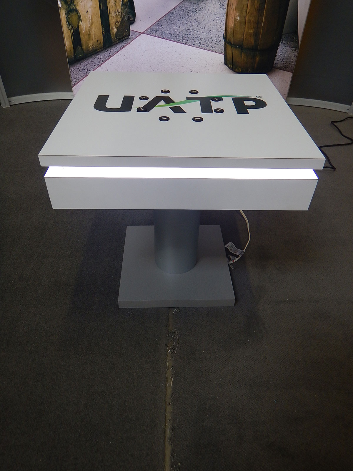Pedestals, SEG Backlit Fabric Graphics, and Sintra Counter
