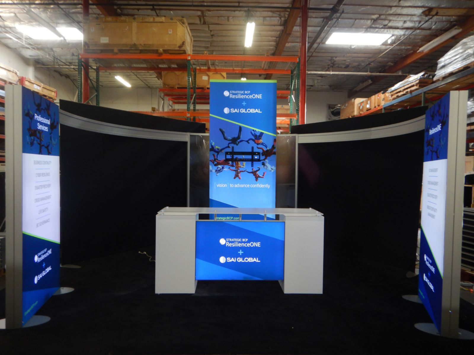 20' Design with (3) Double-Sided Lightboxes, Curved Bridged
