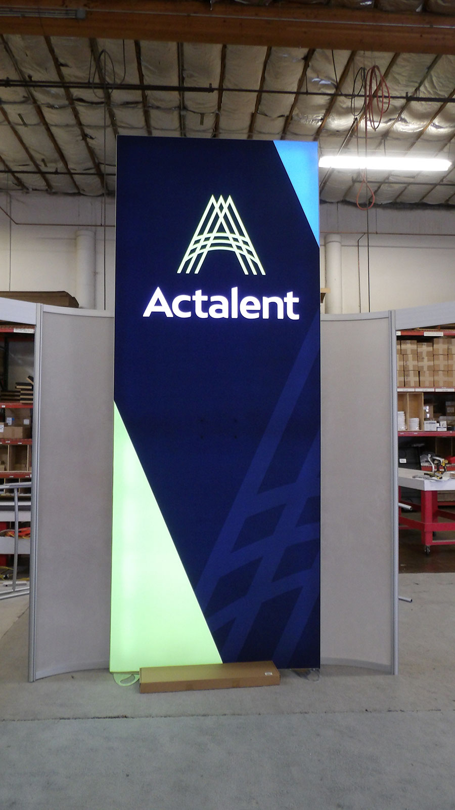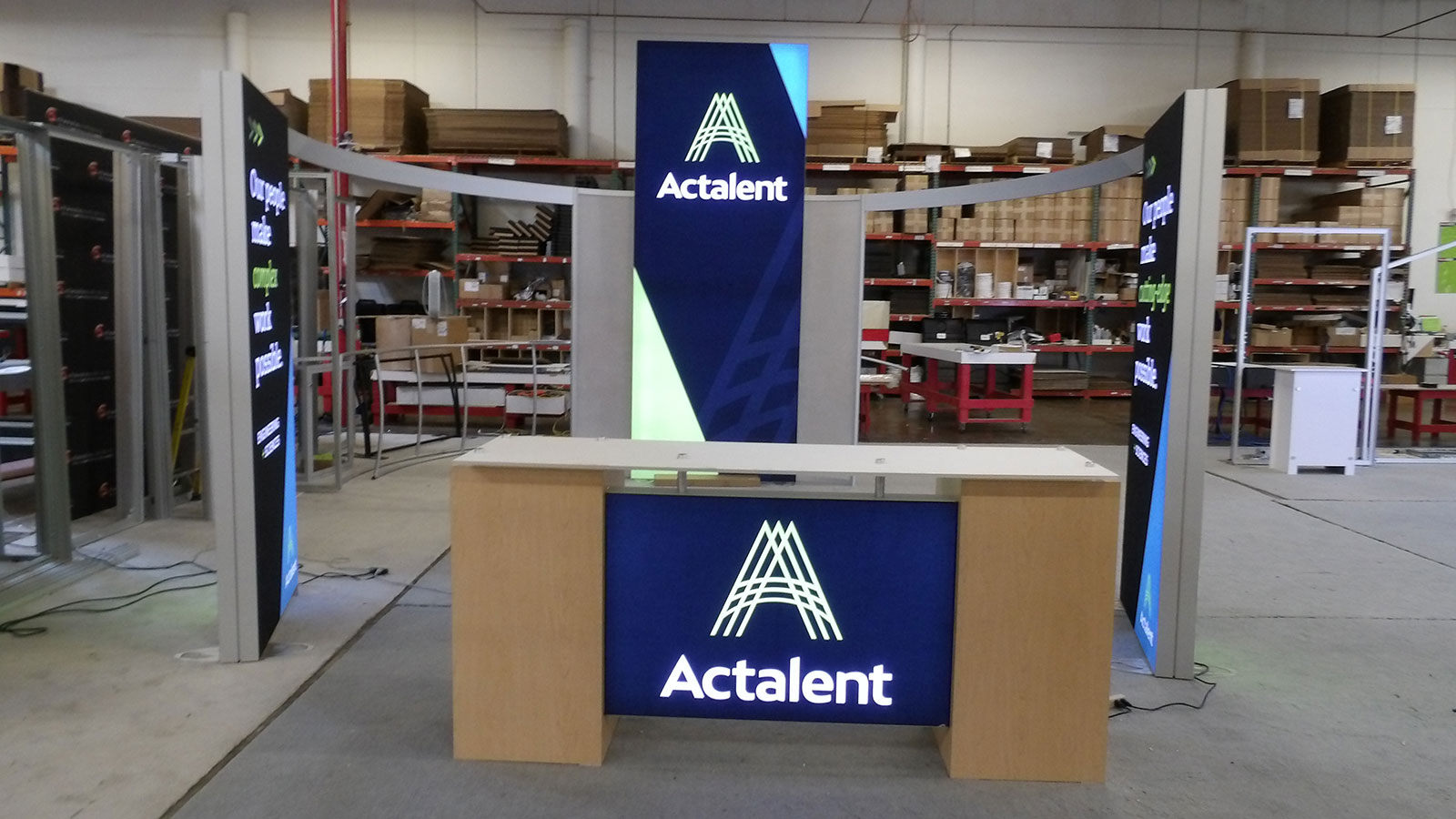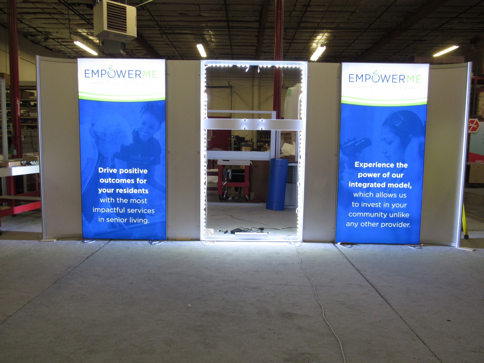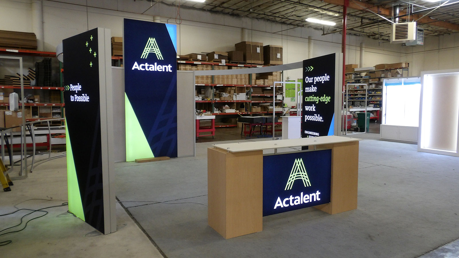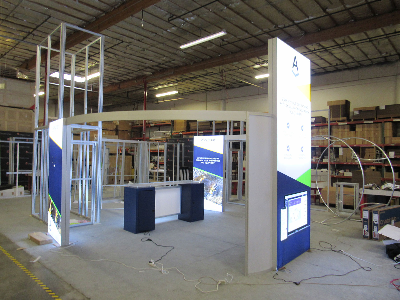 Island Exhibit with Backlit Towers, Monitor Mount, and ECO-42C Backlit Counter