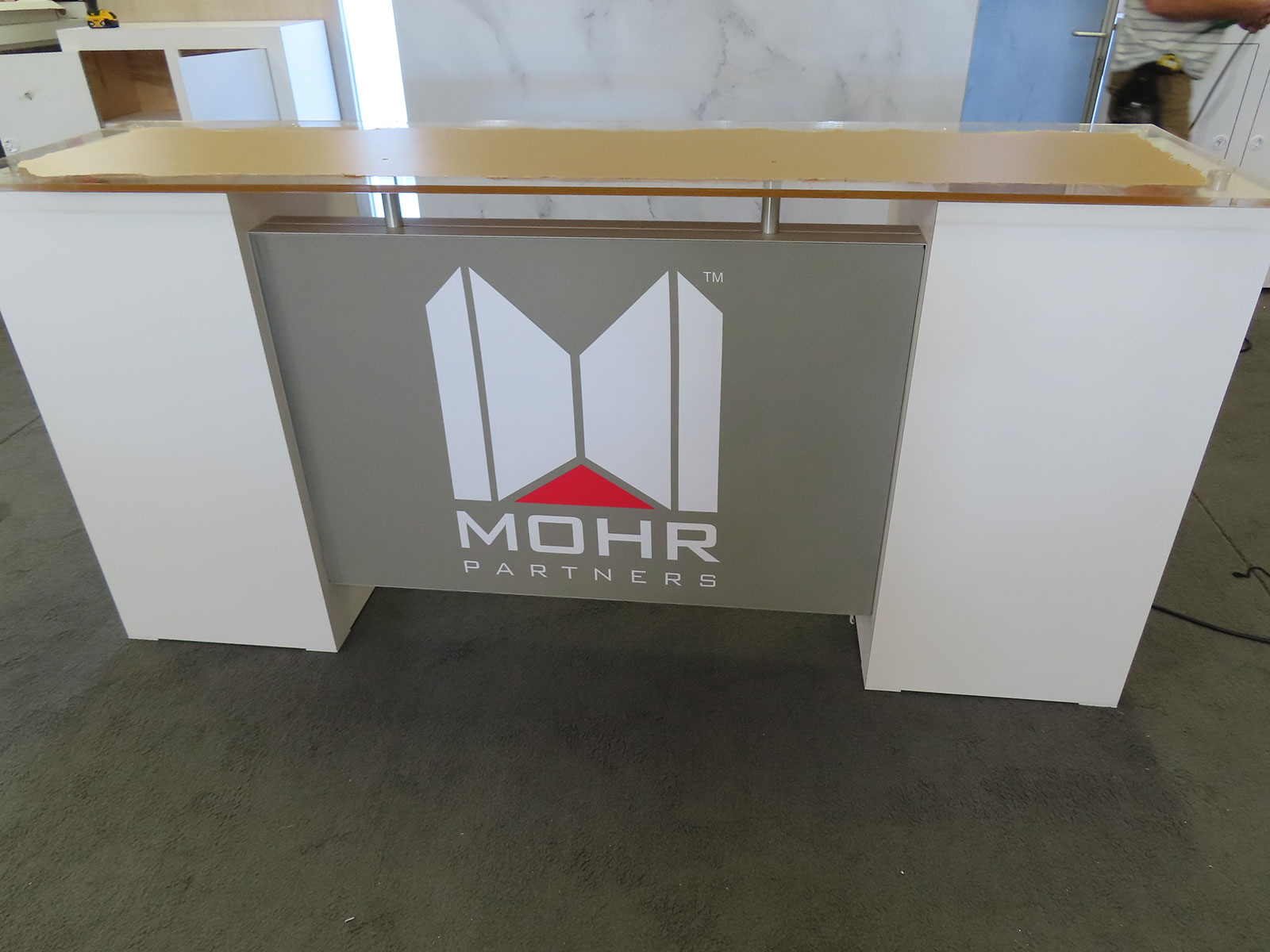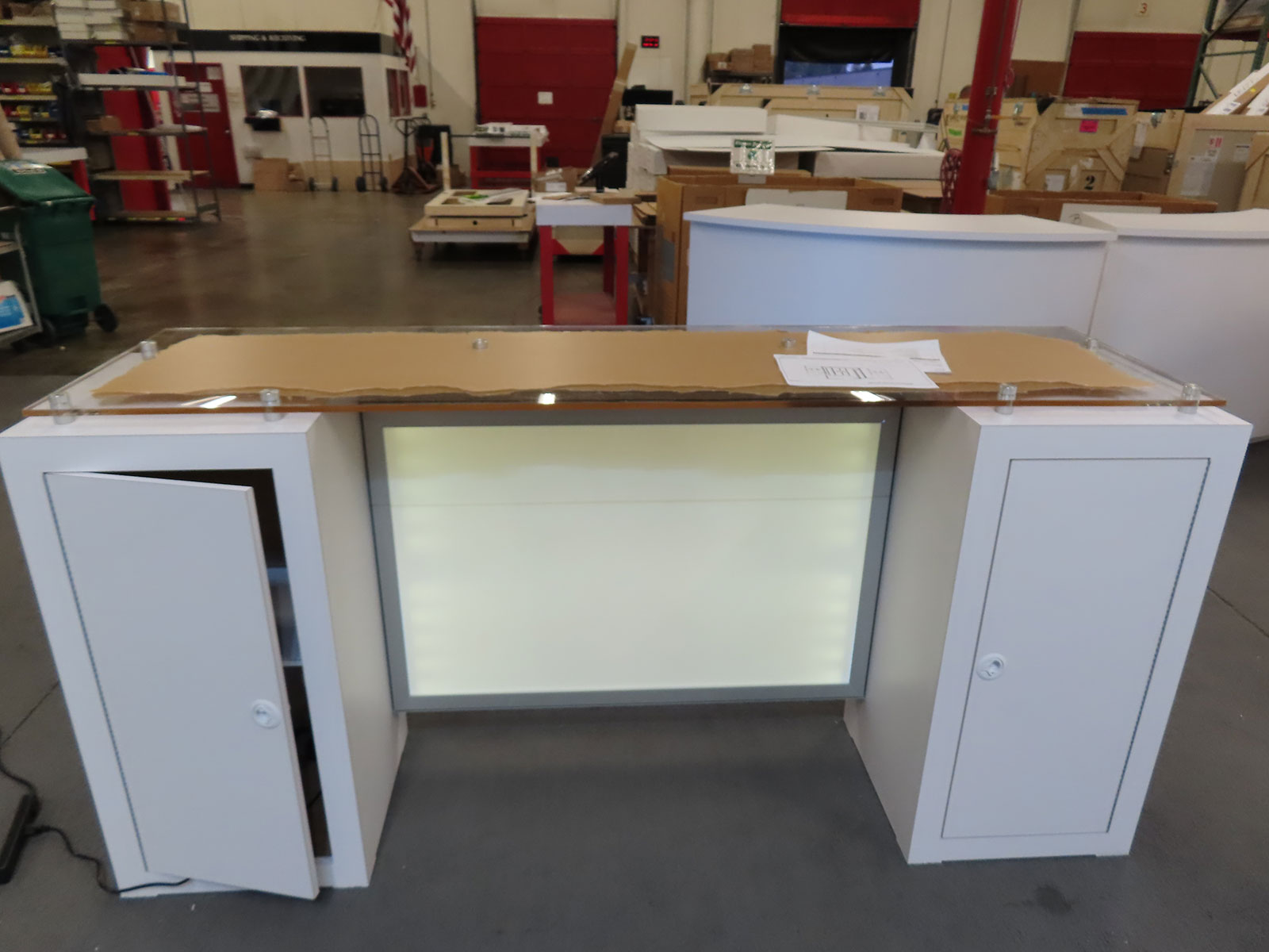 Counter with Storage and Backlit Graphic. Reconfigures to ECO-2056