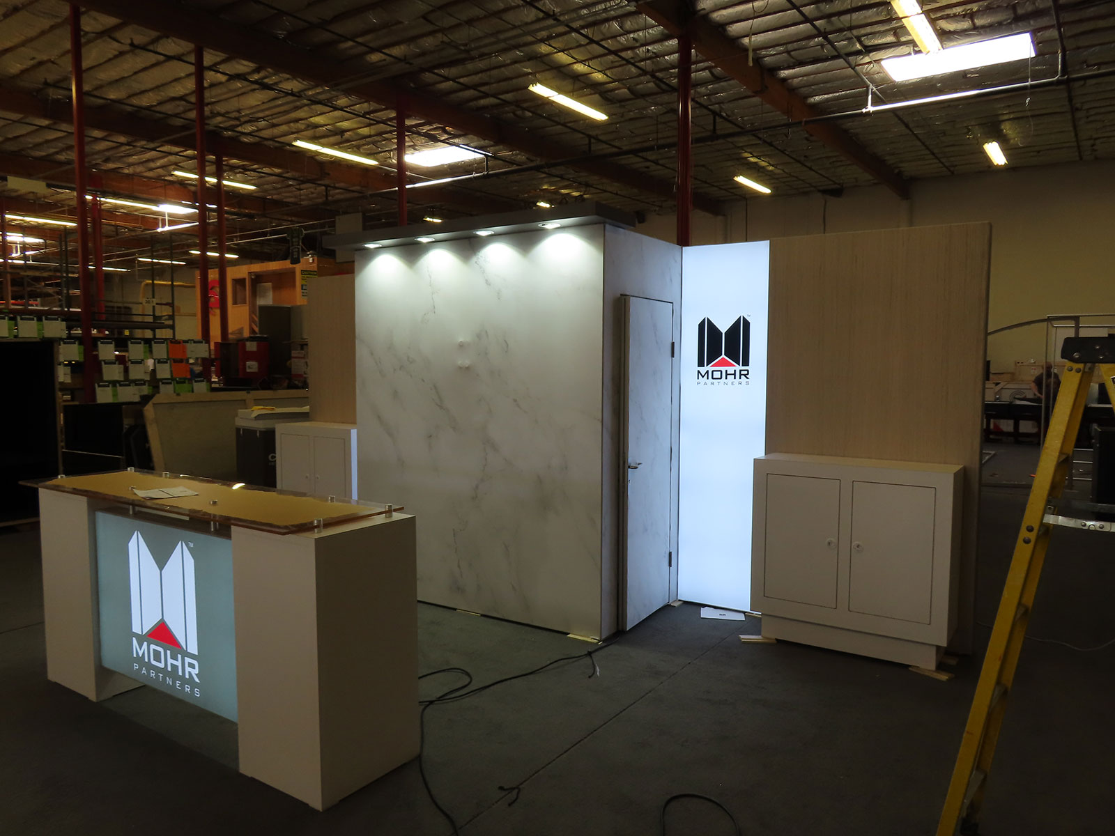Custom Island Exhibit with Custom Backlit Reception Counter and
