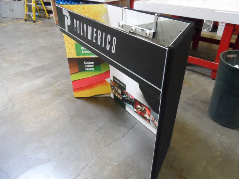 Folding Fabric Table Top with Backlit Header and Velcro-attached