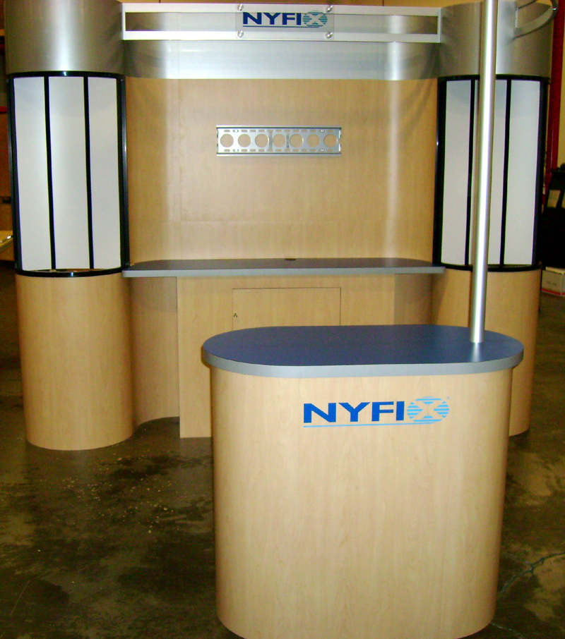 10' x 10' Euro LT Modular Hybrid Display with Custom Archways and Backlit Header Euro LT Oval Counters with Storage Doors and Slide-out Keyboards
