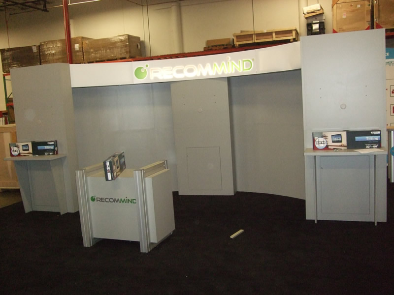 VK-2911 and VK-1316 Hybrid Exhibits with Tension Fabric Exhibits, Puck Lights, Modified MOD-1157 Counter with Locking Storage, Full-size Closet, Monitor Mount, and MOD-1431 Charging Tower VK-2911 and VK-1316 Hybrid Kits VK-2911 and VK-1316 Hybrid Kits MOD-1431 Charging Tower