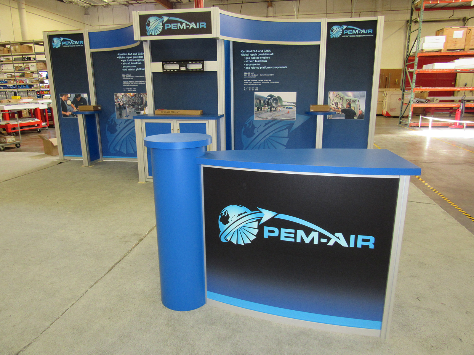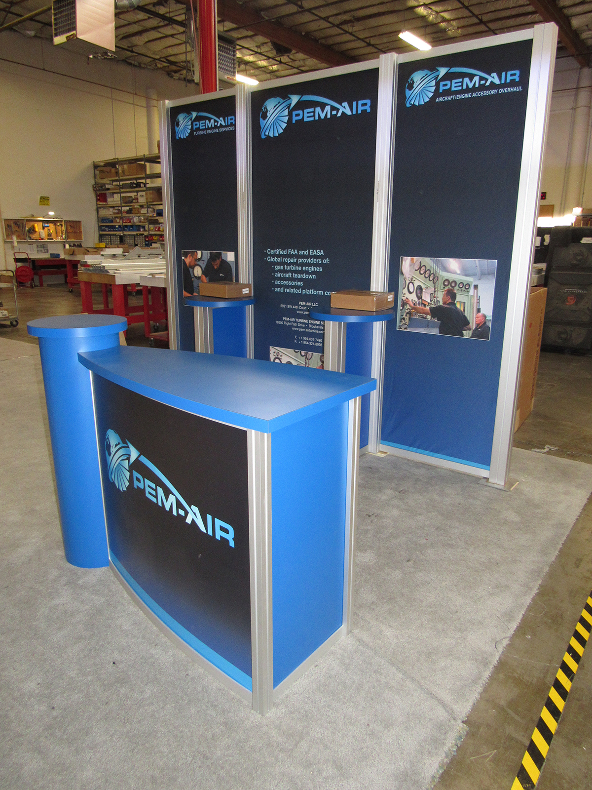 Modified VK-5095 Hybrid Island with Tension Fabric Graphics, Counters, and Shelves -- Image 1 Modified VK-5095 Hybrid Island with Tension Fabric Graphics, Counters, and Shelves -- Image 2 Modified VK-5095 Hybrid Island with Tension Fabric Graphics, Counters, and Shelves -- Image 3 Modified VK-5095 Hybrid Island with Tension Fabric Graphics, Counters, and Shelves -- Image 4