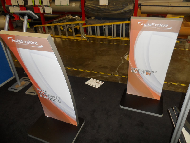 (2) MOD-1363 iPad Kiosk Stands with Tension Fabric Graphics -- Image 1 (2) MOD-1363 iPad Kiosk Stands with Tension Fabric Graphics -- Image 2 (2) MOD-1363 iPad Kiosk Stands with Tension Fabric Graphics -- Image 3