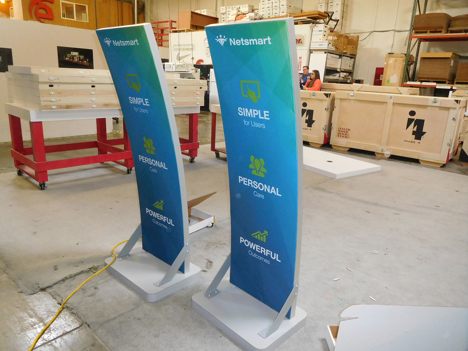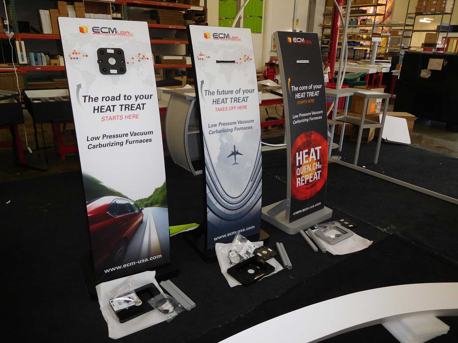 (3) MOD-1363 Curved iPad Kiosks with Tension Fabric SEG Graphics (3) MOD-1363 Curved iPad Kiosks with Tension Fabric SEG Graphics