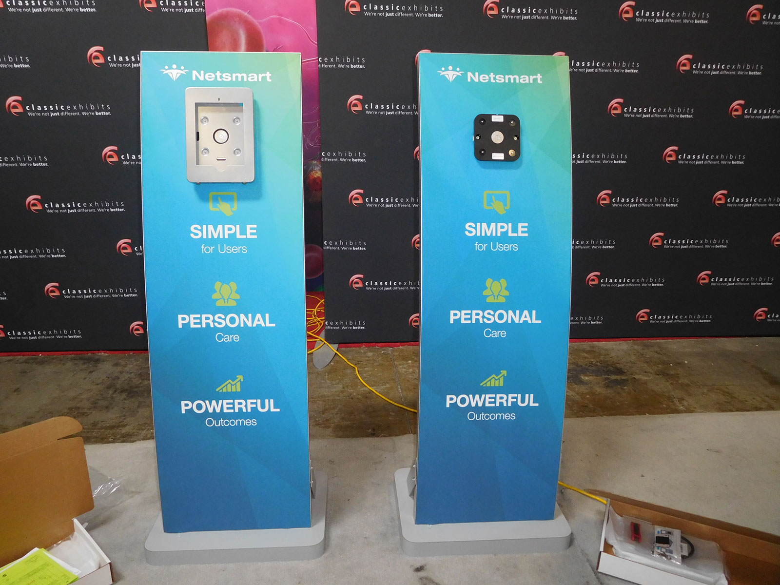 (3) Double-sided MOD-1363 iPad Kiosks with Fabric Graphics (3) Double-sided MOD-1363 iPad Kiosks with Fabric Graphics