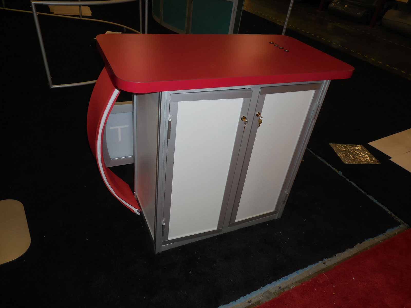 Counter with Fabric Accents and Locking Storage, and MOD-1369 iPad Stand