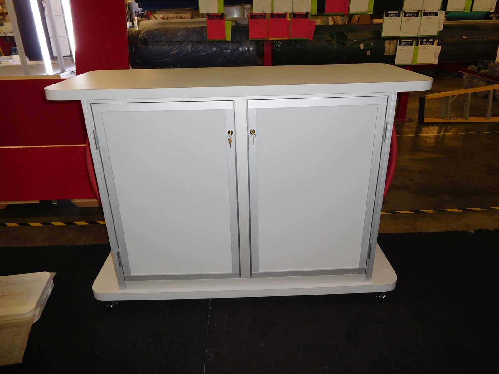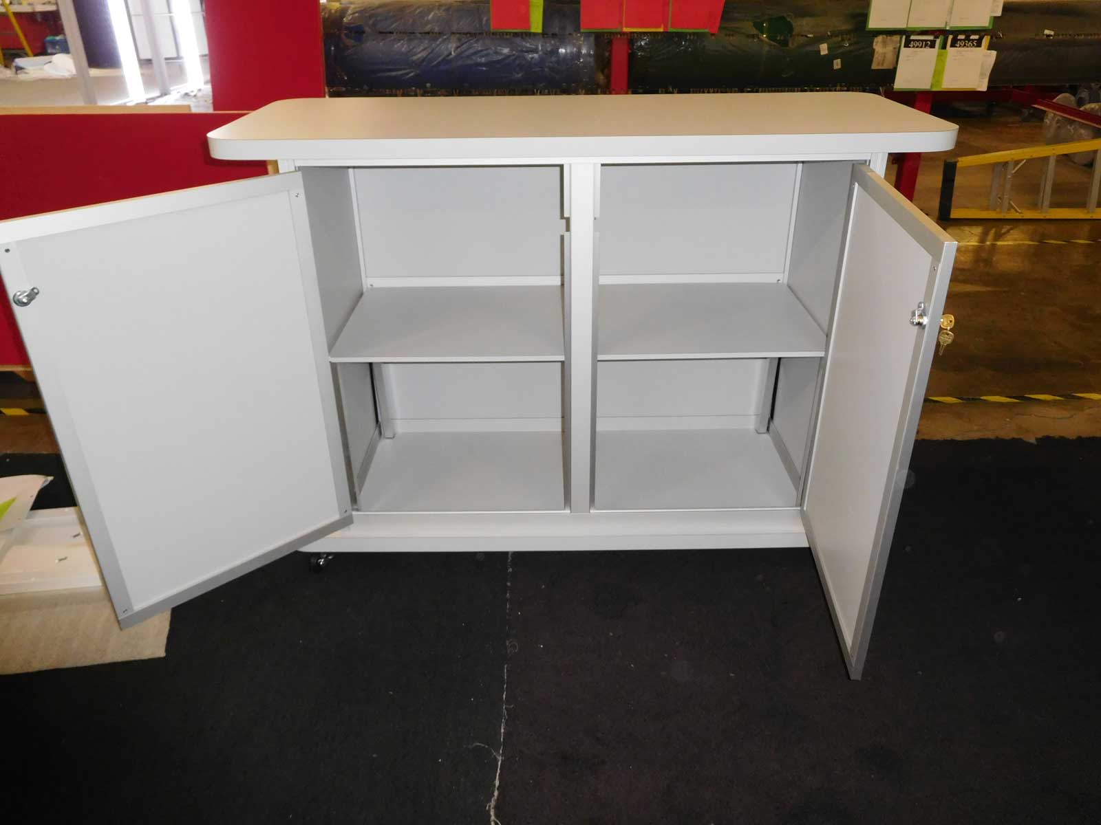 Counter with Tension Fabric Accents and Locking Storage [49691]