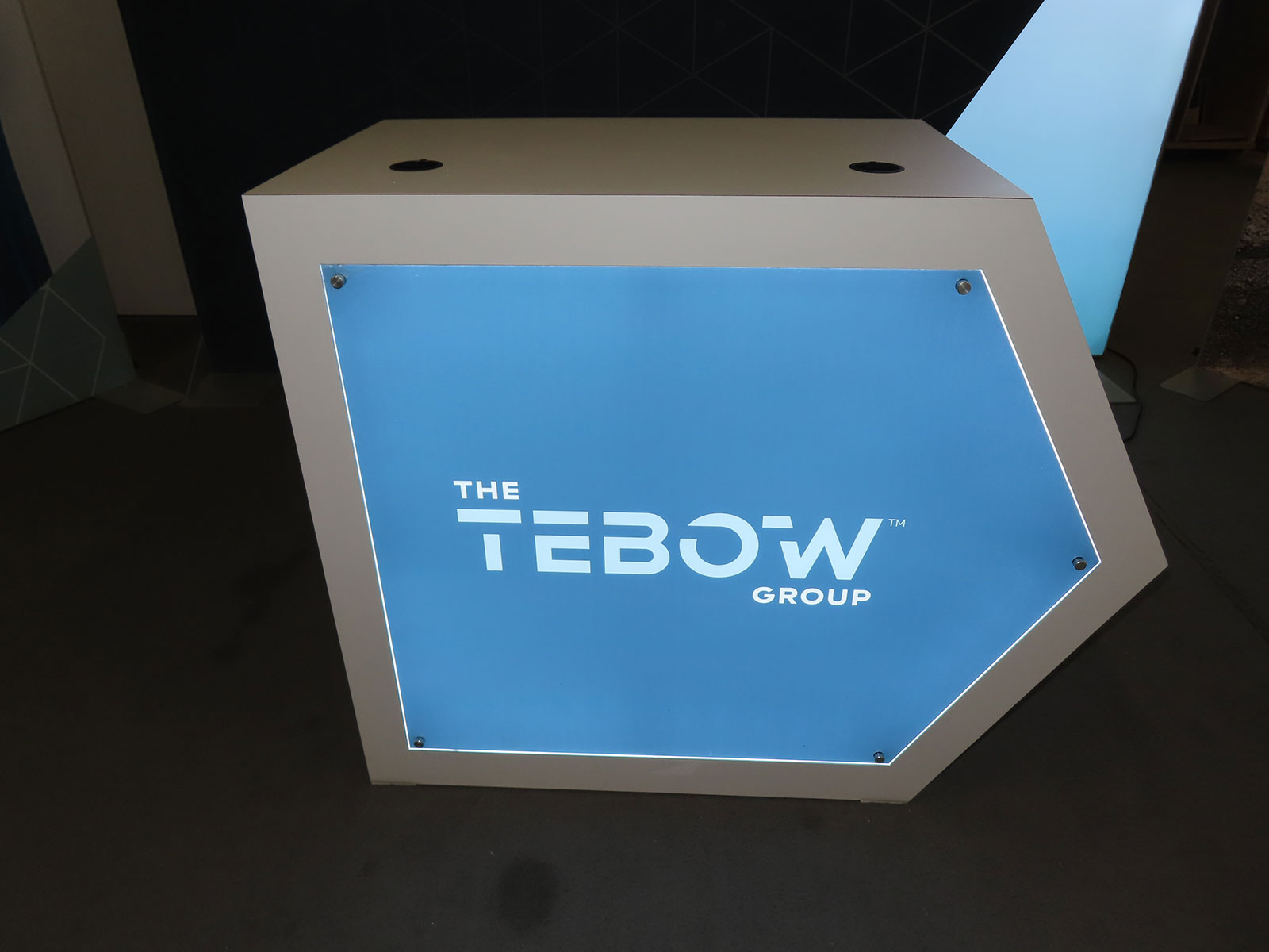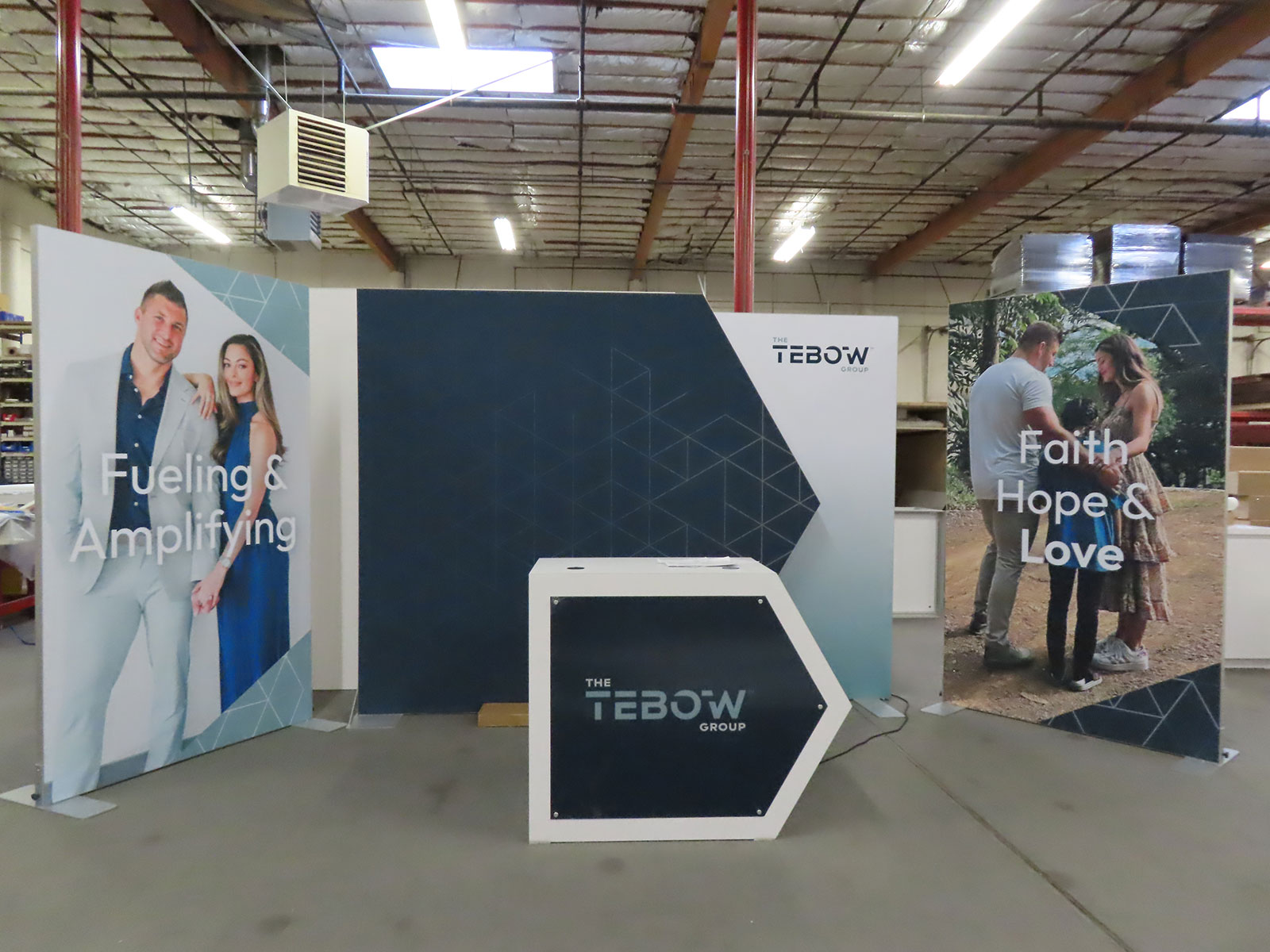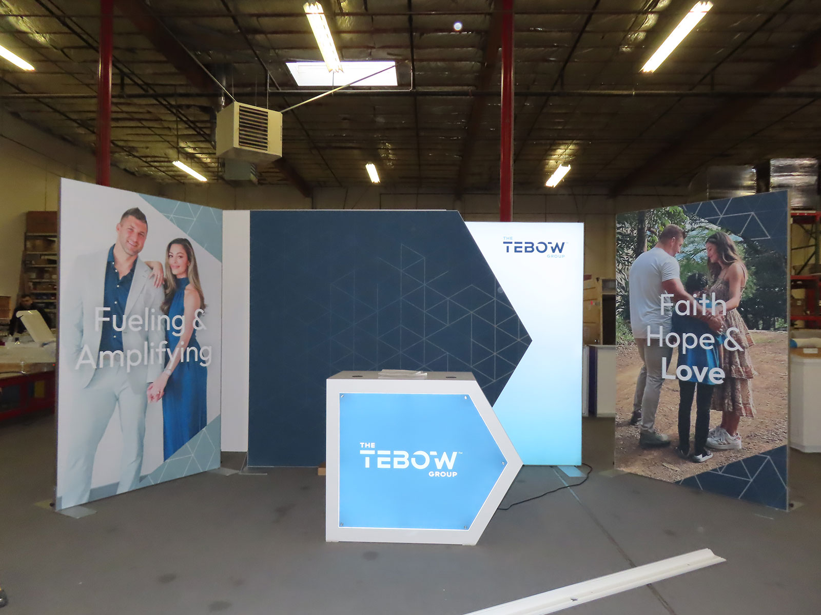 VK-4022 Backlit Inline Exhibit with SEG Fabric Graphics and MOD-1589 Backlit Reception Counter with Locking Strorage and Interior Shelf VK-4022 Backlit Inline Exhibit with SEG Fabric Graphics and MOD-1589 Backlit Reception Counter with Locking Strorage and Interior Shelf