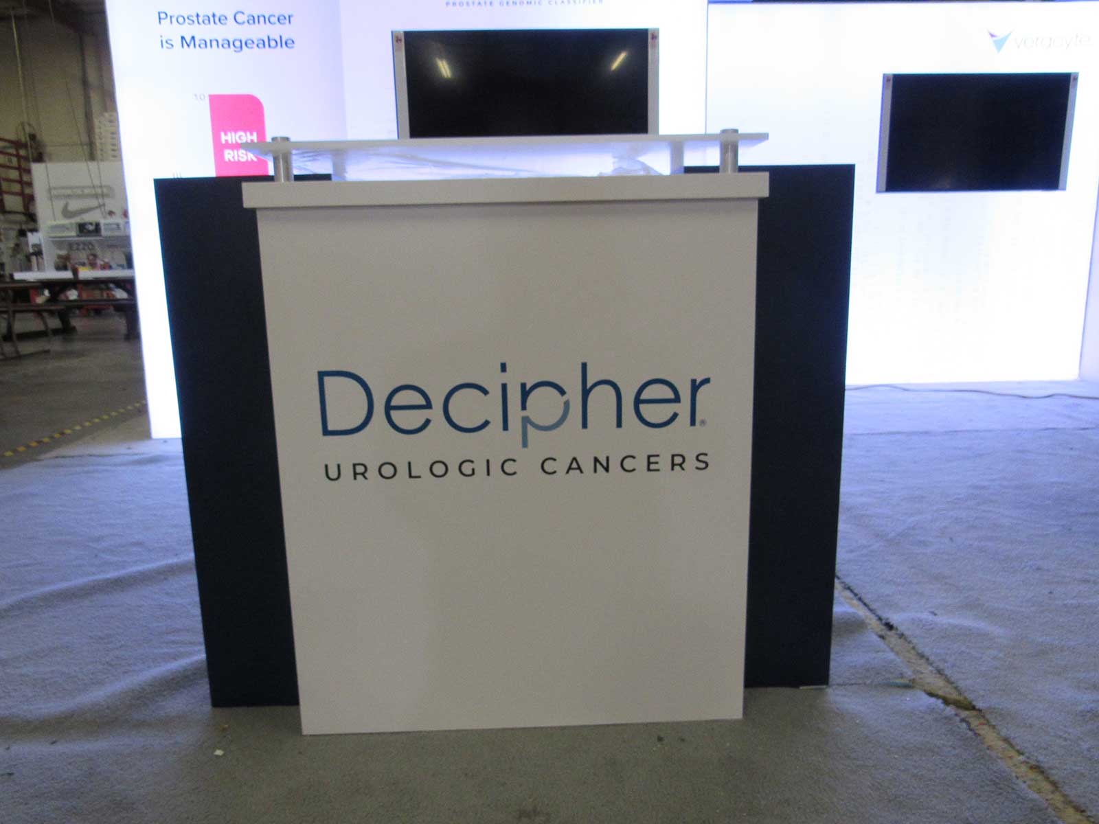 Modified VK-2984 Backlit Exhibit with SEG Graphics, Monitor Mount, Locking Closet, (3) MOD-1462 Charging Tables, and MOD-1591 Reception Counter Modified VK-2984 Backlit Exhibit with SEG Graphics, Monitor Mount, Locking Closet, (3) MOD-1462 Charging Tables, and MOD-1591 Reception Counter Modified VK-2984 Backlit Exhibit with SEG Graphics, Monitor Mount, Locking Closet, (3) MOD-1462 Charging Tables, and MOD-1591 Reception Counter Modified VK-2984 Backlit Exhibit with SEG Graphics, Monitor Mount, Locking Closet, (3) MOD-1462 Charging Tables, and MOD-1591 Reception Counter