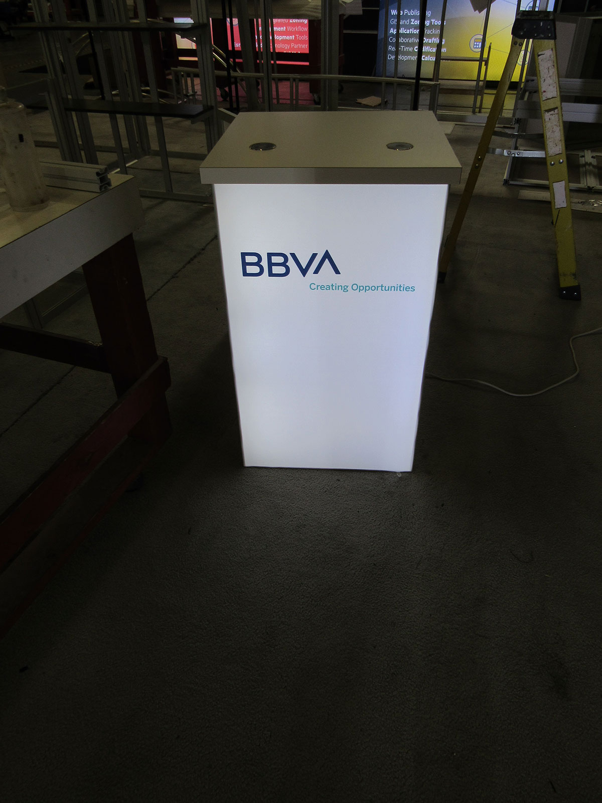 Modified VK-2993 SuperNova Backlit Exhibit with Monitor Mount and MOD-1701 Backlit Counter with Locking Storage MOD-1701 Backlit Counter with Locking Storage Modified VK-2993 SuperNova Backlit Exhibit with Monitor Mount and MOD-1701 Backlit Counter with Locking Storage