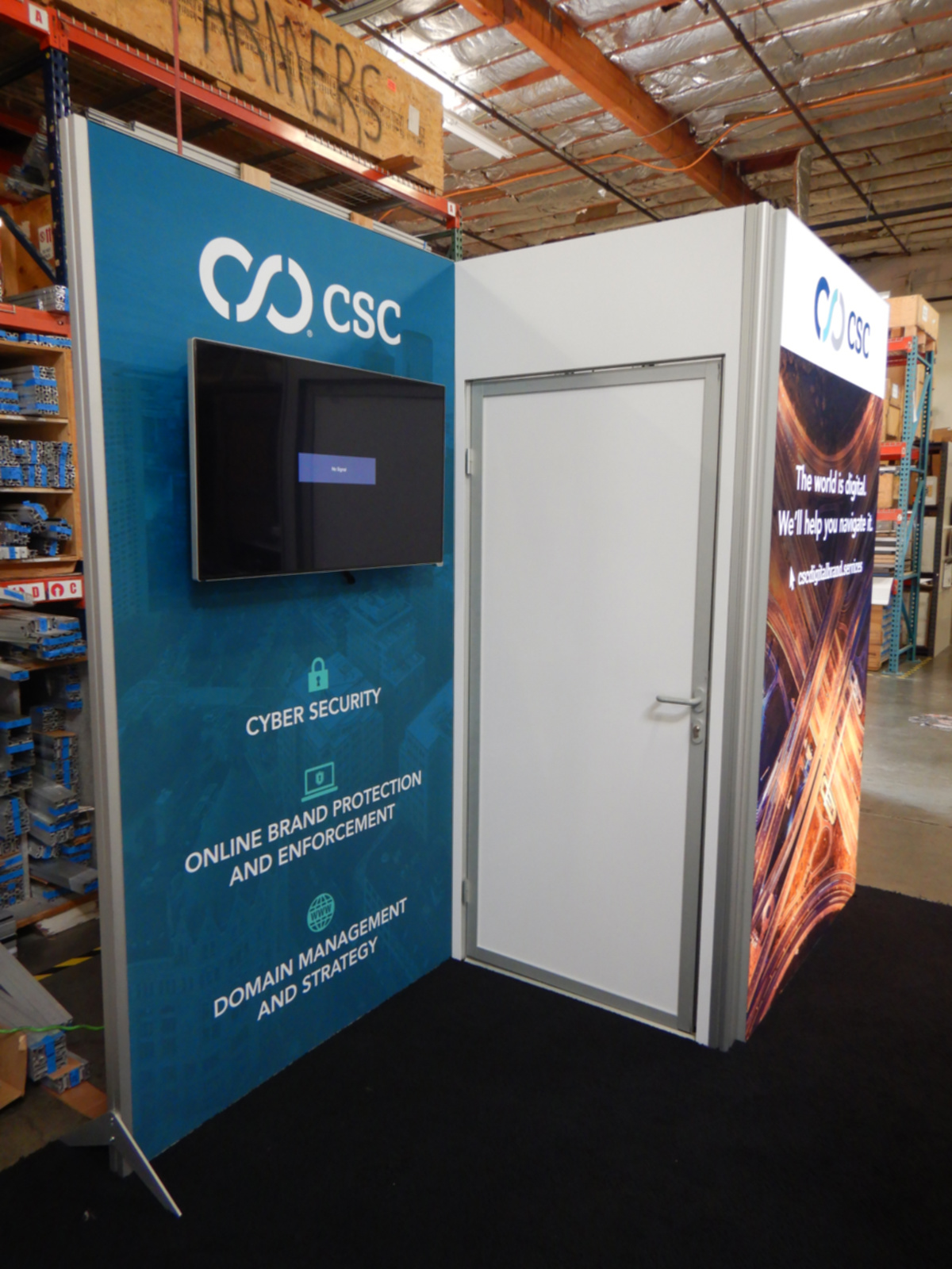 Modified GK-1004 Modular Inline Exhibit with Fabric Graphics, Backlighting, Monitor Mount, Storage Door, and Shelves Modified GK-1004 Modular Inline Exhibit with Fabric Graphics, Backlighting, Monitor Mount, Storage Door, and Shelves Modified GK-1004 Modular Inline Exhibit with Fabric Graphics, Backlighting, Monitor Mount, Storage Door, and Shelves