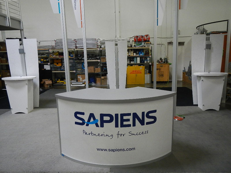 RENTAL: (10) RE-1212 Tapered Counter Kiosks with Profile Cut Sintra Graphics