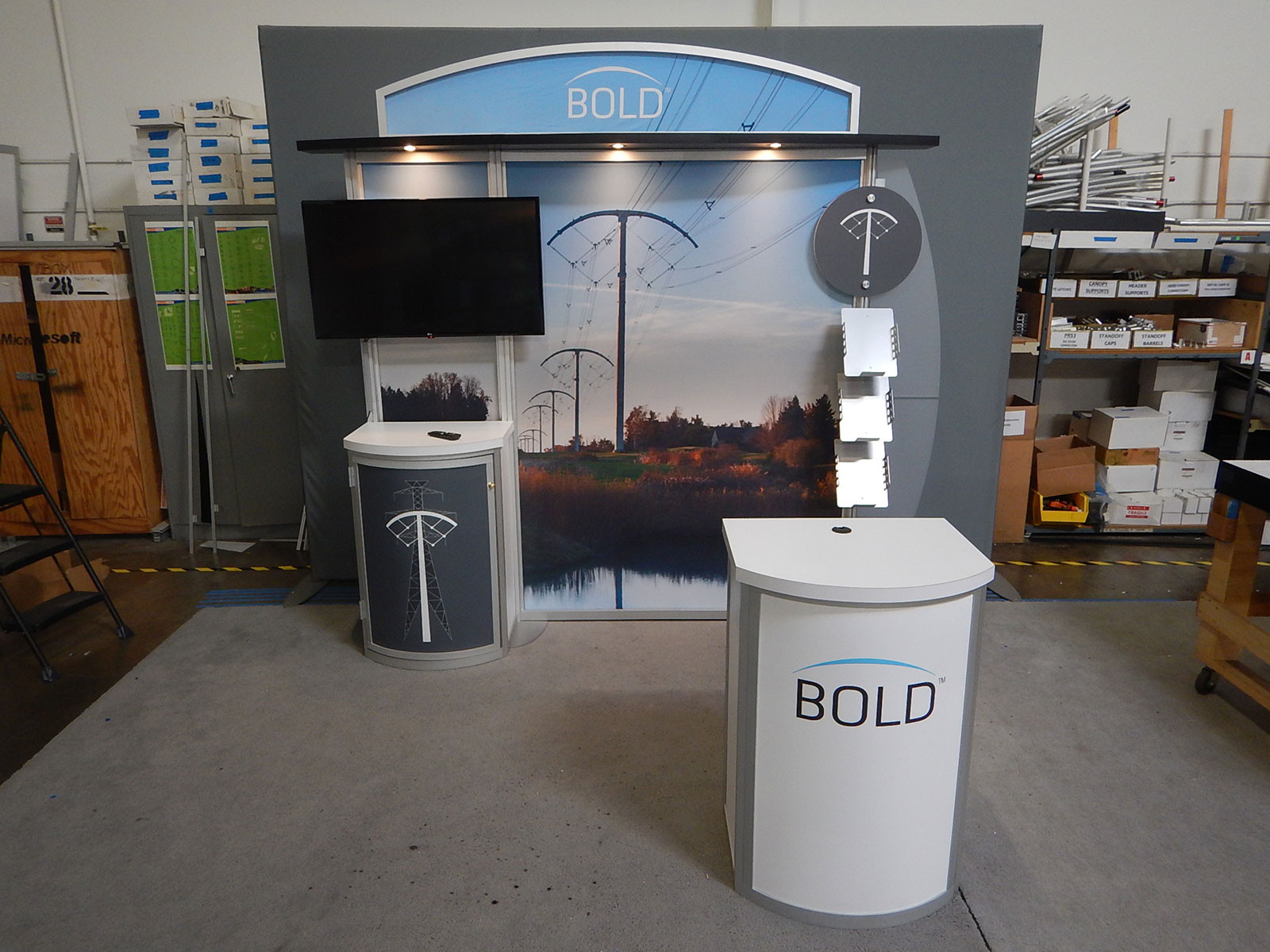 Pedestal, Tension Fabric Graphics for Backwall, and Sintra Graphics