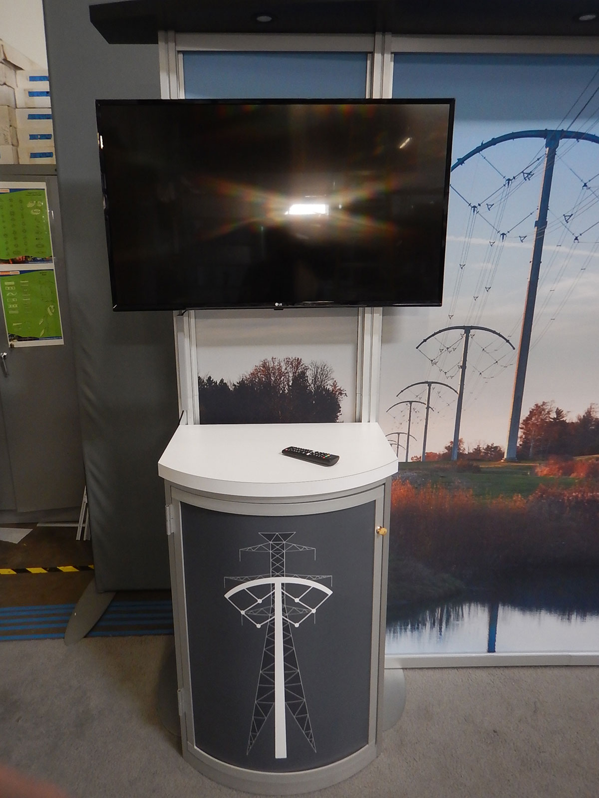 Curved Pedestal with Sintra Graphics, and 42" Monitor