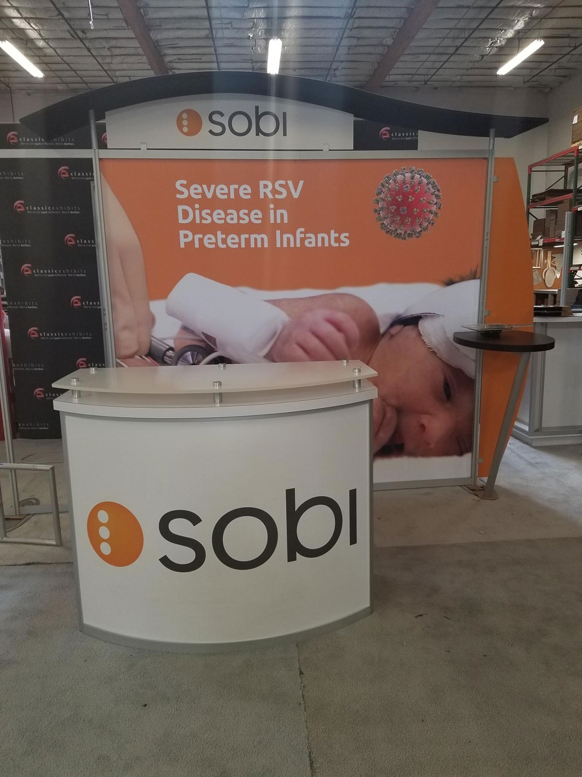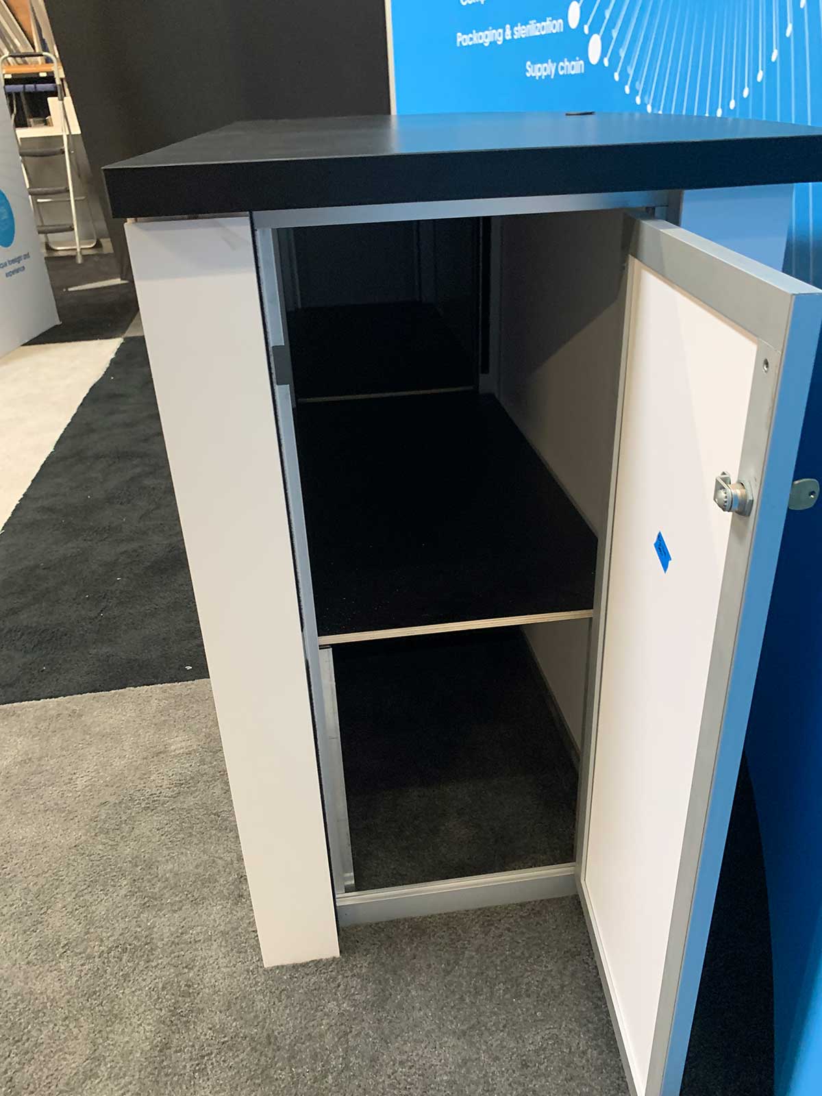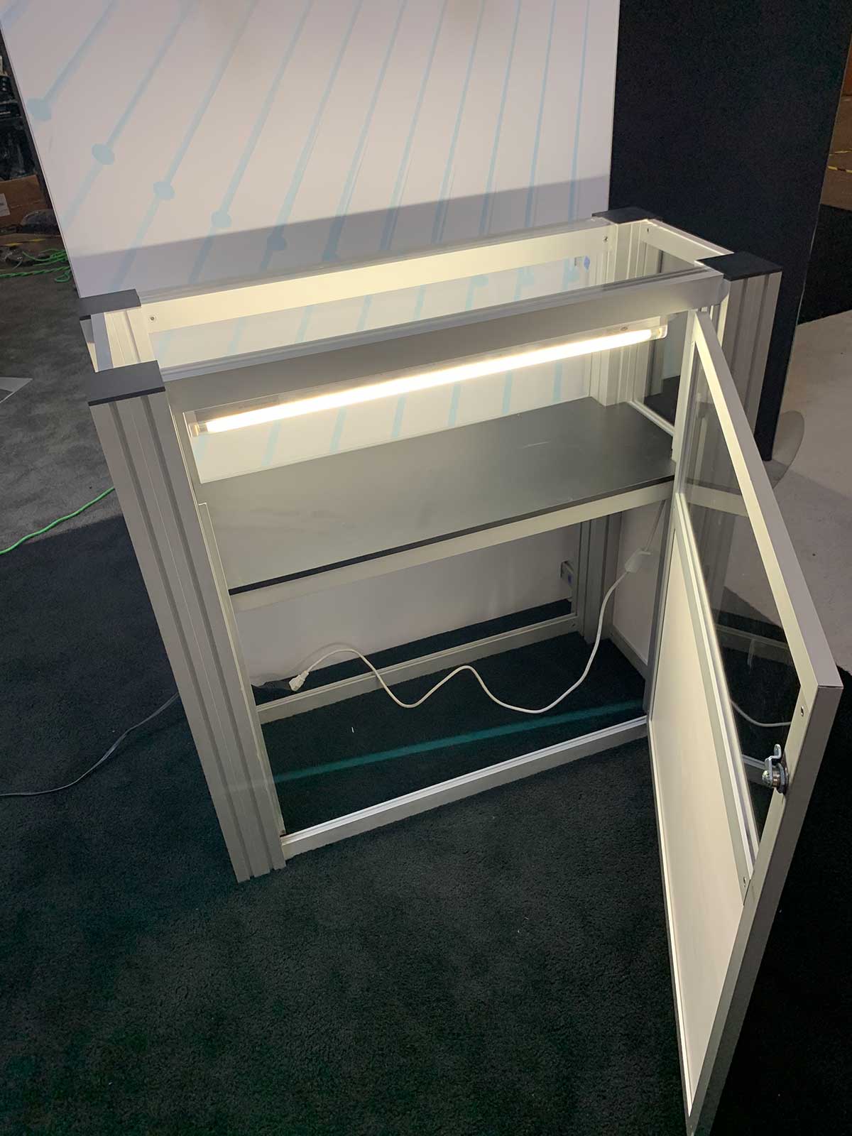 Exhibit with Tension Fabric Graphics, Backwall Counter with Locking