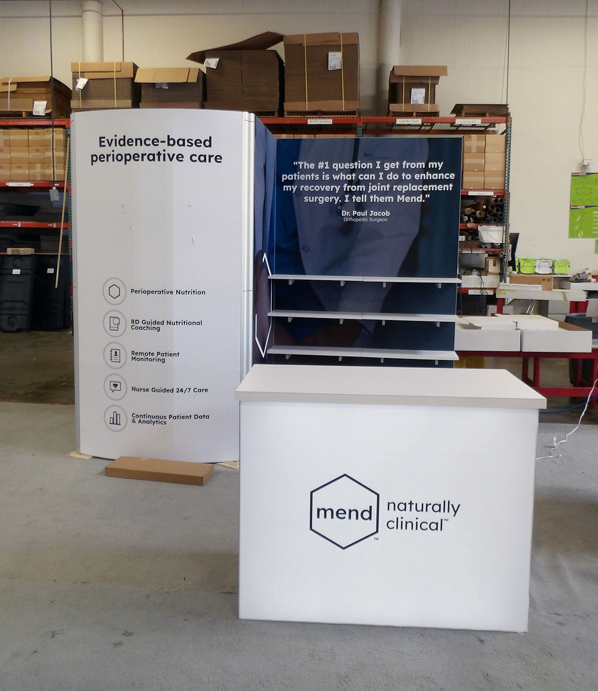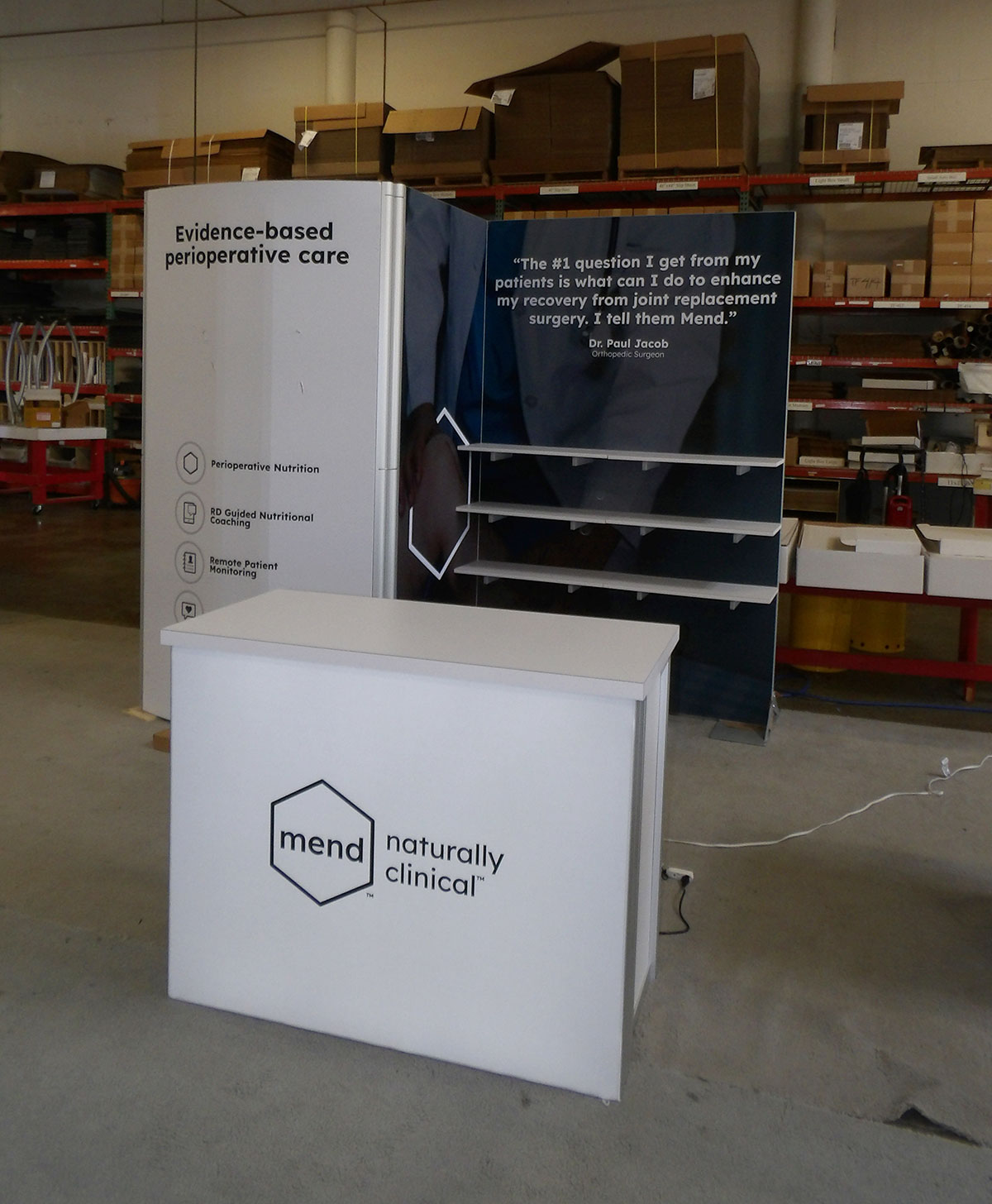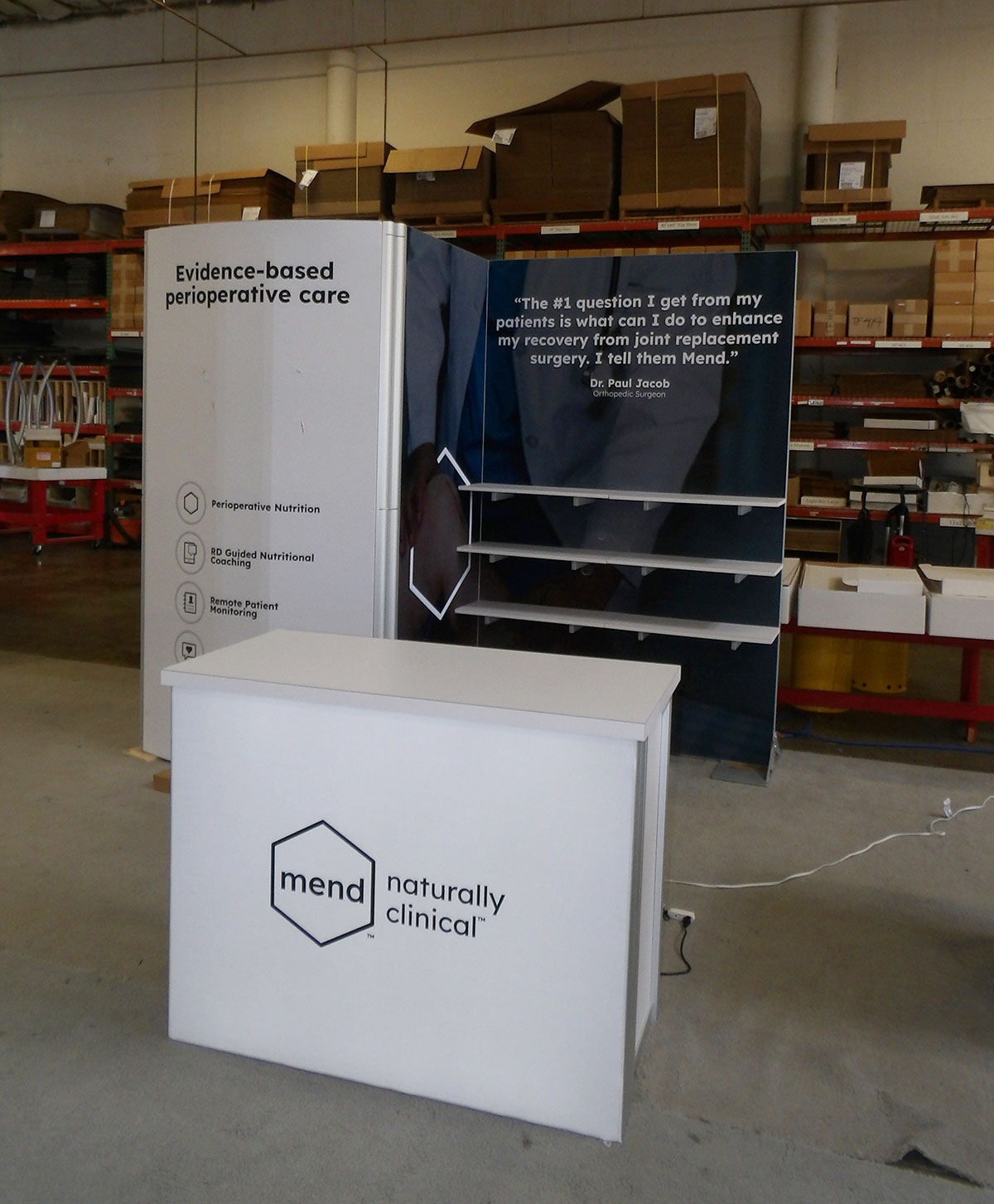 Custom Angled Product Displays, (5) LED Arm Lights, SEG Fabric