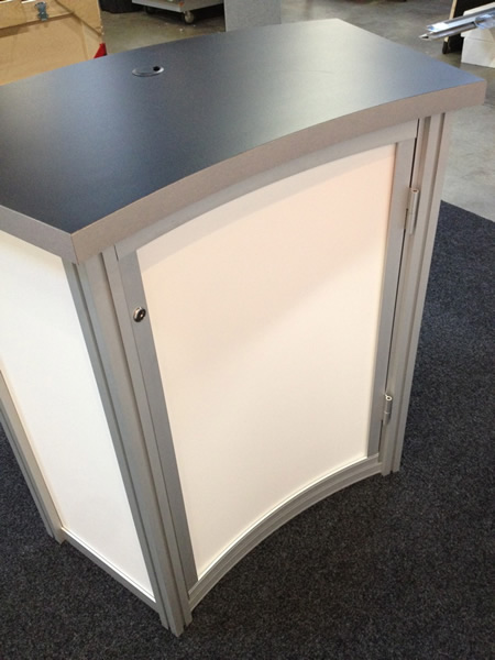 RENTAL:  RE-2028 Perfect 20 Backwall with (6) Halogen Arm Lights,  (1) Attached VK-1659 Counter, (1) RE-1213 Workstation Kiosk with Small Monitor Mount, (1) RE-1228 Small Curved Counter -- Image 1 RENTAL:  RE-2028 Perfect 20 Backwall with (6) Halogen Arm Lights -- Image 2 RENTAL:  RE-2028 Perfect 20 Backwall with (6) Halogen Arm Lights -- Image 3 RENTAL:  RE-2028 Perfect 20 Backwall with (6) Halogen Arm Lights -- Image 4 RENTAL:  RE-2028 Perfect 20 Backwall with (6) Halogen Arm Lights -- Image 5