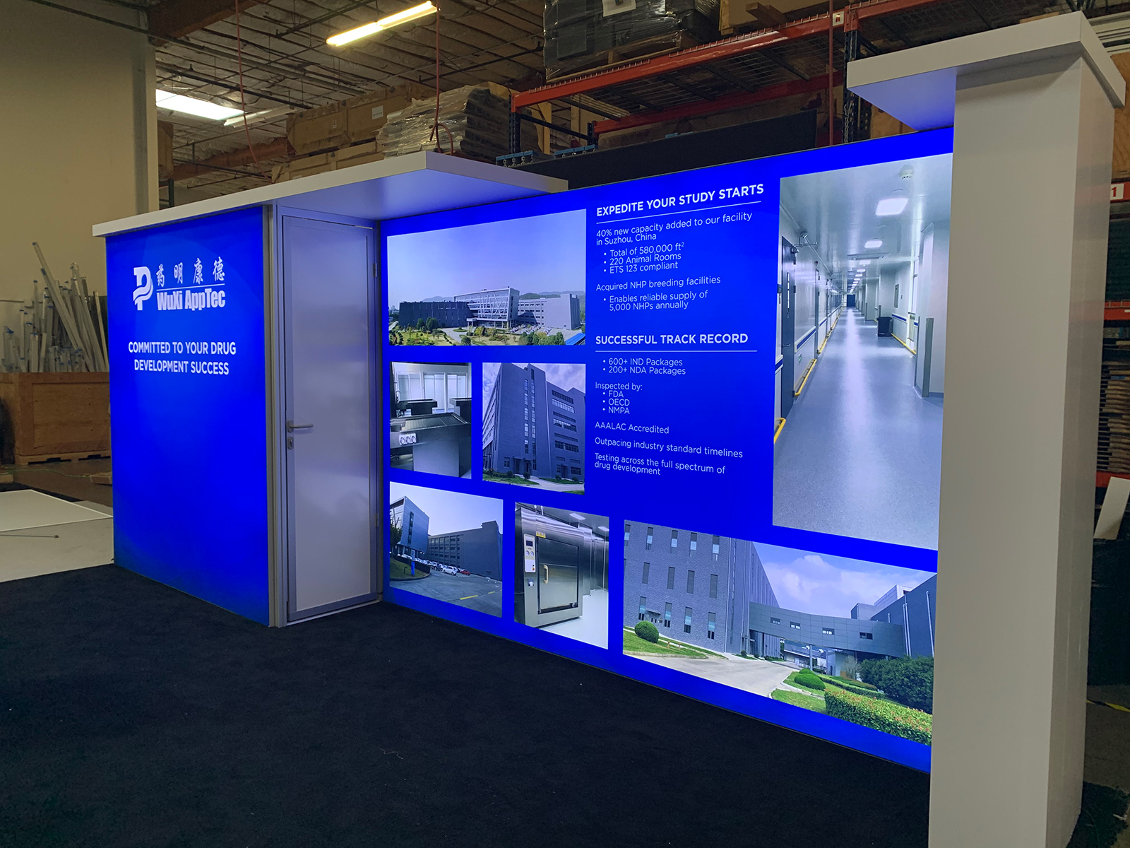 Modified VK-2984 Backlit Inline Exhibit with Closet Storage, SEG Fabric Graphics, and MOD-1267 Pedestal with Locking Storage Modified VK-2984 Backlit Inline Exhibit with Closet Storage, SEG Fabric Graphics, and MOD-1267 Pedestal with Locking Storage