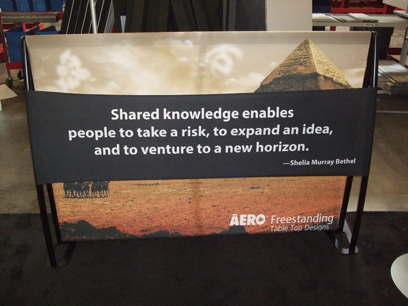 Aero Table Top Display (TF-404) with Tension Fabric Graphics. Display Disassembles and Packs in a Portable Case