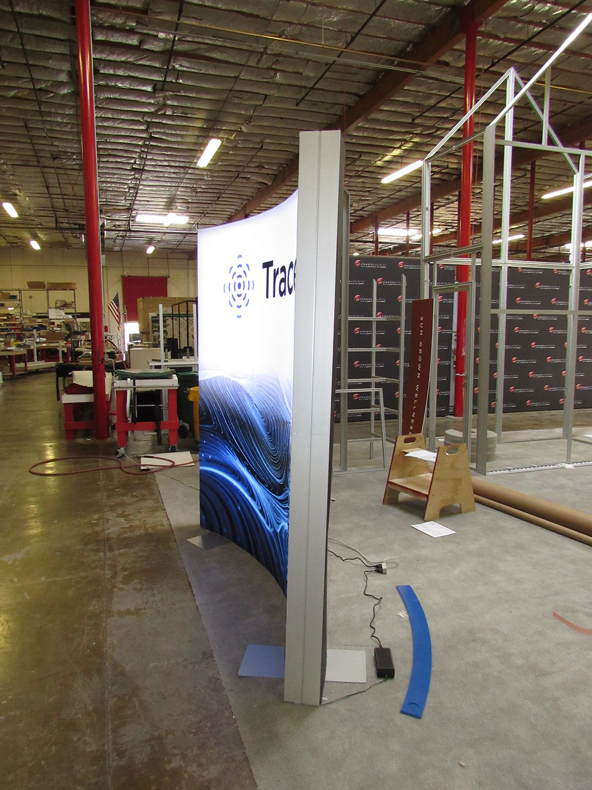 (2) Double-sided VK-1948 Curved SuperNova LED Lightboxes and (1) Flat Lightbox with Tension Fabric Graphics (2) Double-sided VK-1948 Curved SuperNova LED Lightboxes and (1) Flat Lightbox with Tension Fabric Graphics