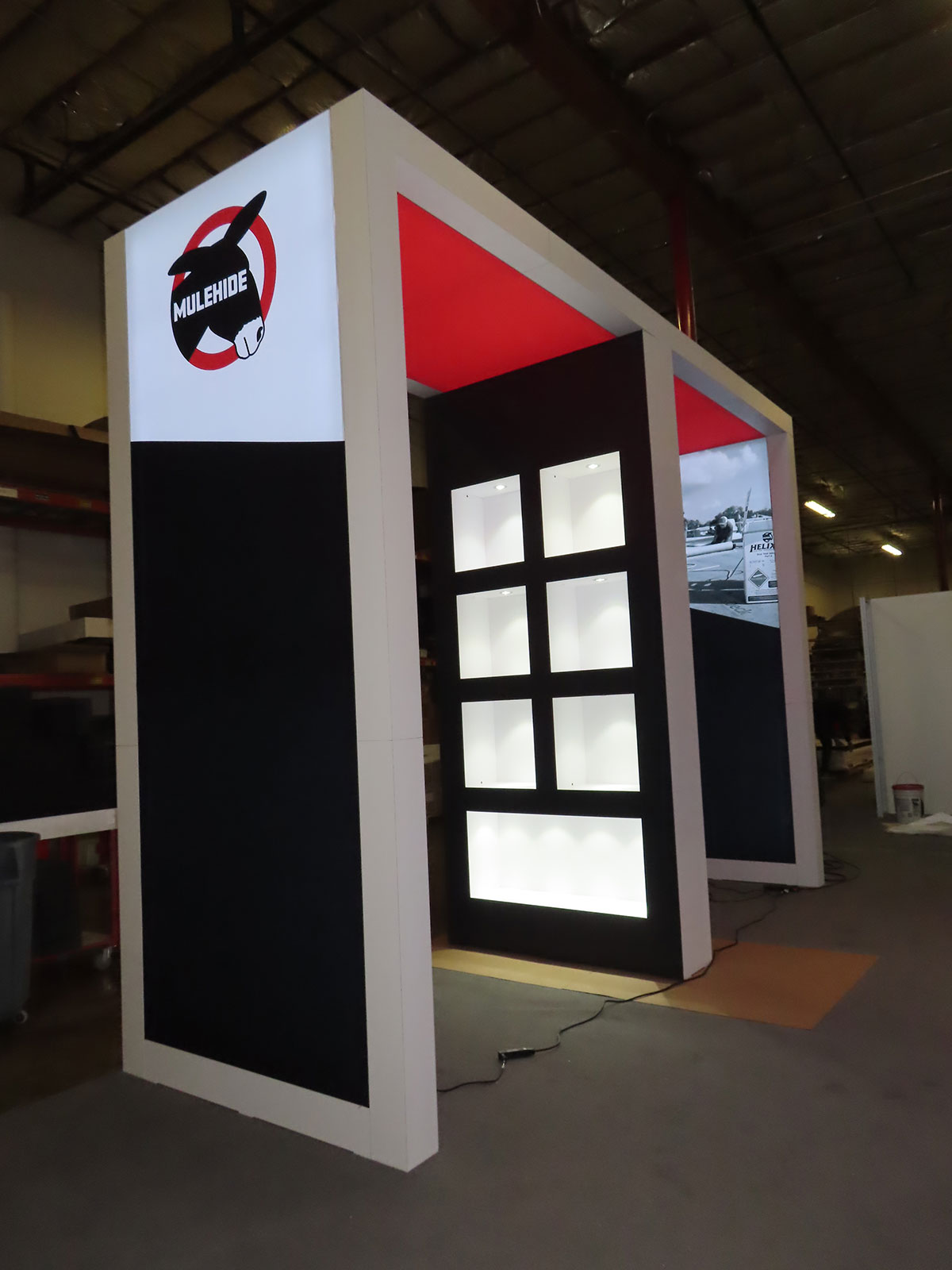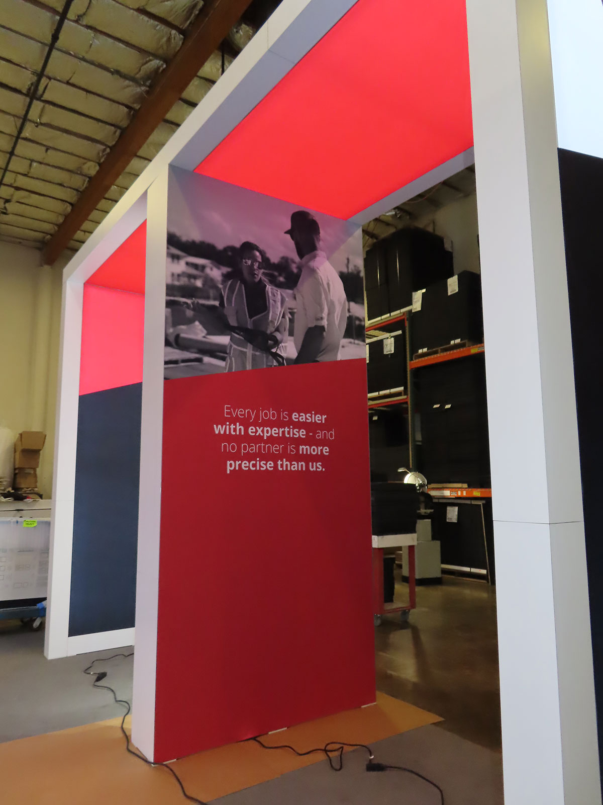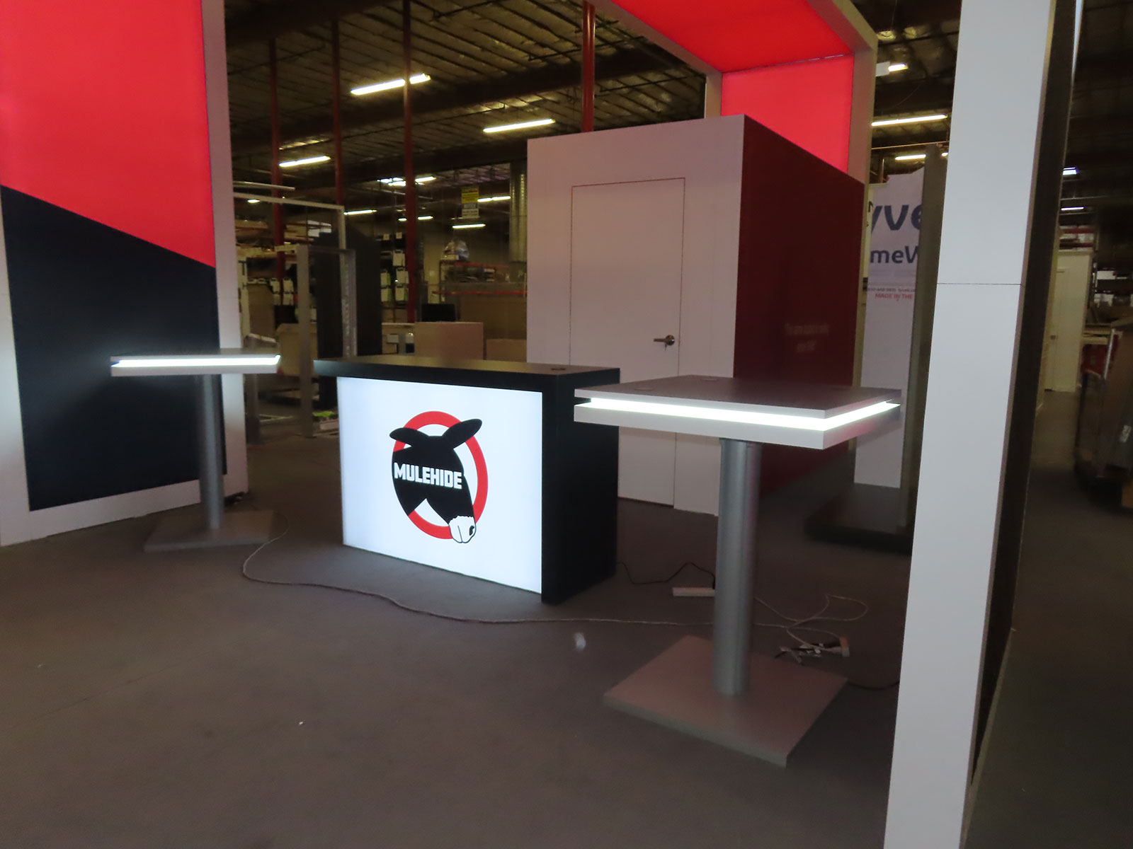 Modified VK-5173 Island Exhibit (reconfigs to VK-4033) with Backlit and Non-Backlit Tension Fabric Graphics, (2) Arches, Storage Closet, MOD-1716 Reception Counter with Locking Storage, (2) MOD-1454 Wireless Charging Tables with Accent Lights, and (4) Mon Modified VK-5173 Island Exhibit -- View 2 Modified VK-5173 Island Exhibit -- View 3 Modified VK-5173 Island Exhibit -- View 4 Modified VK-5173 Island Exhibit -- View 5 VK-4033 10 x 20 Version