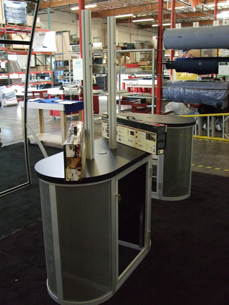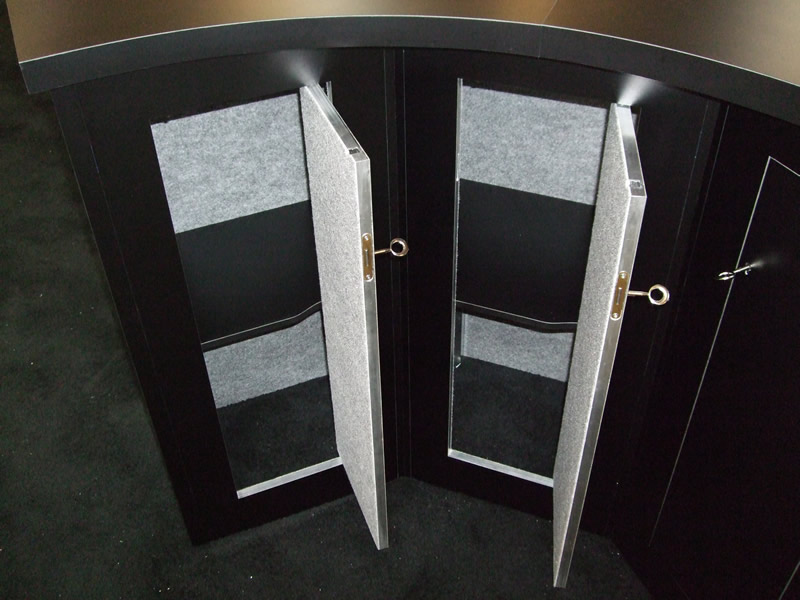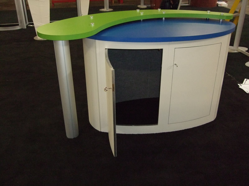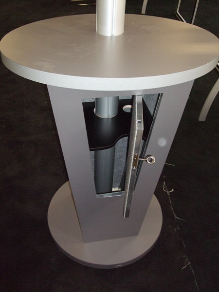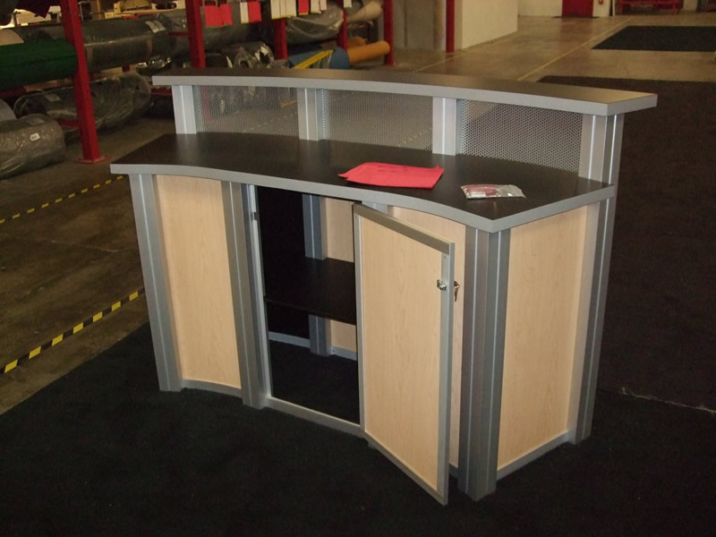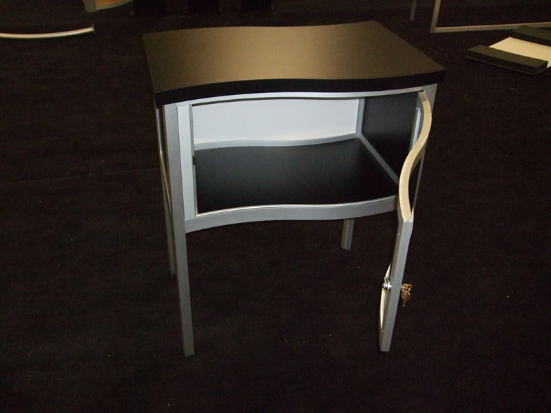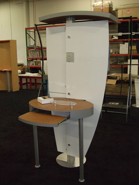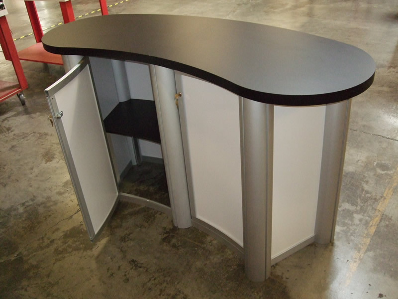 Kiosk with Locking Storage and Tension Fabric Header (not shown).