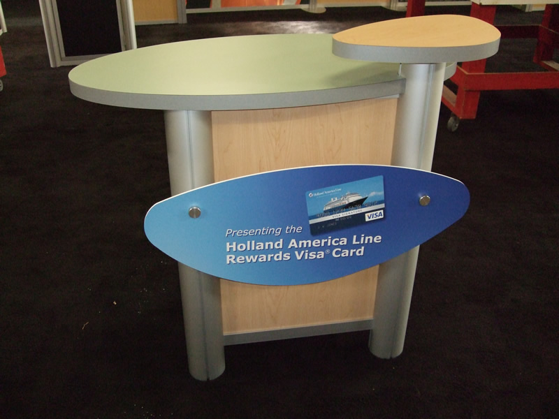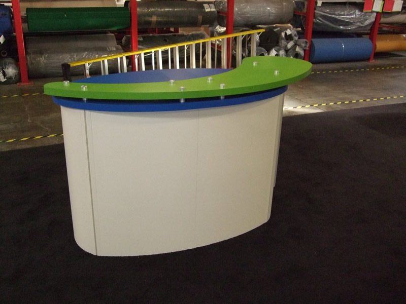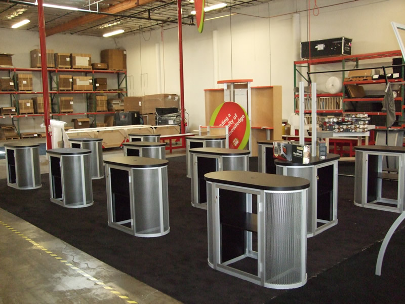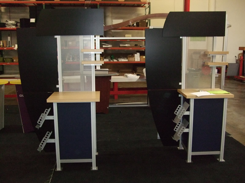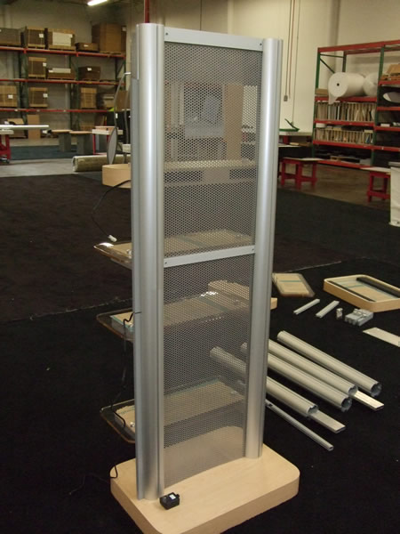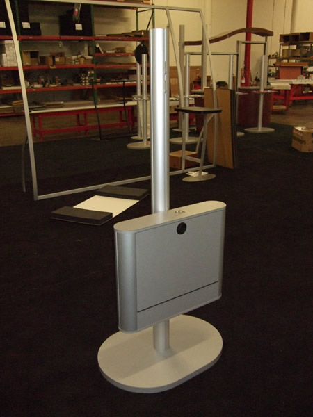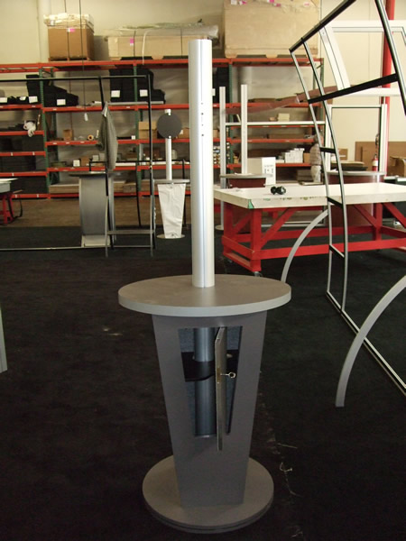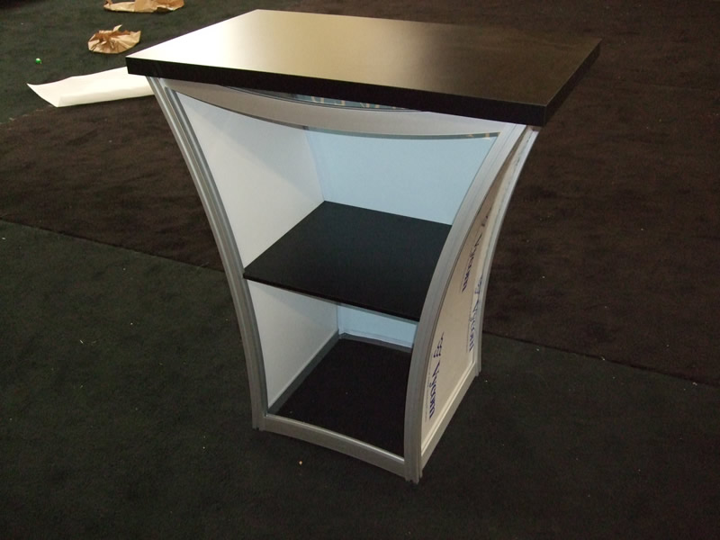 Kiosk with Locking Storage and Tension Fabric Header (not shown).