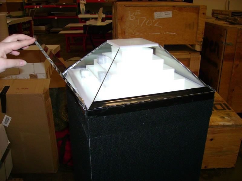 Rotating Beacon (half size) with Illuminated Plex Cap and Illuminated Plex Cap with Hinge and Jewelry Shelves