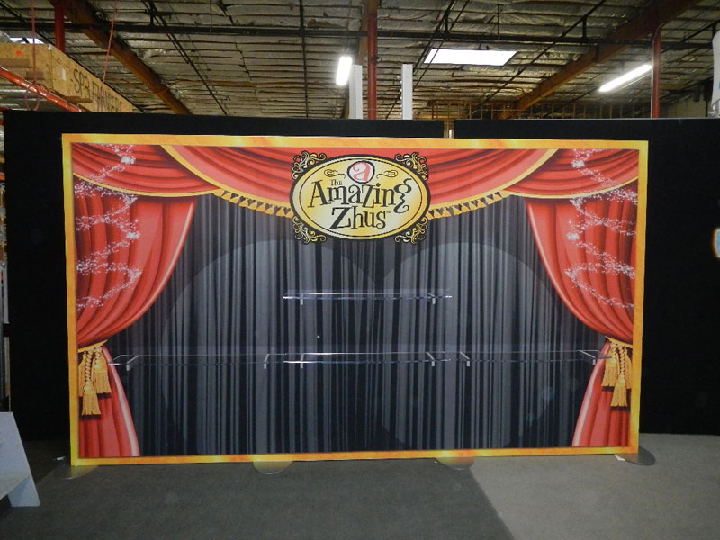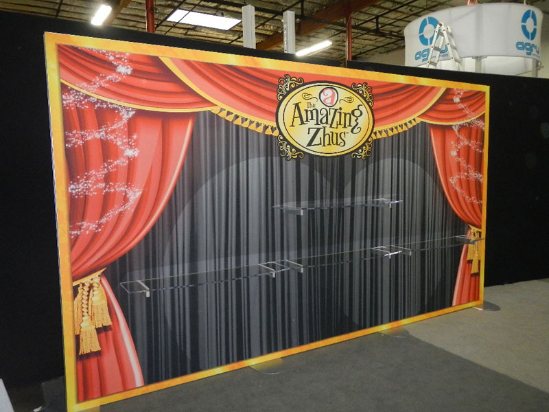 RENTAL: Extrusion Backwalls with SEG Fabric Graphics and (4) Clear Acrylic Shelves