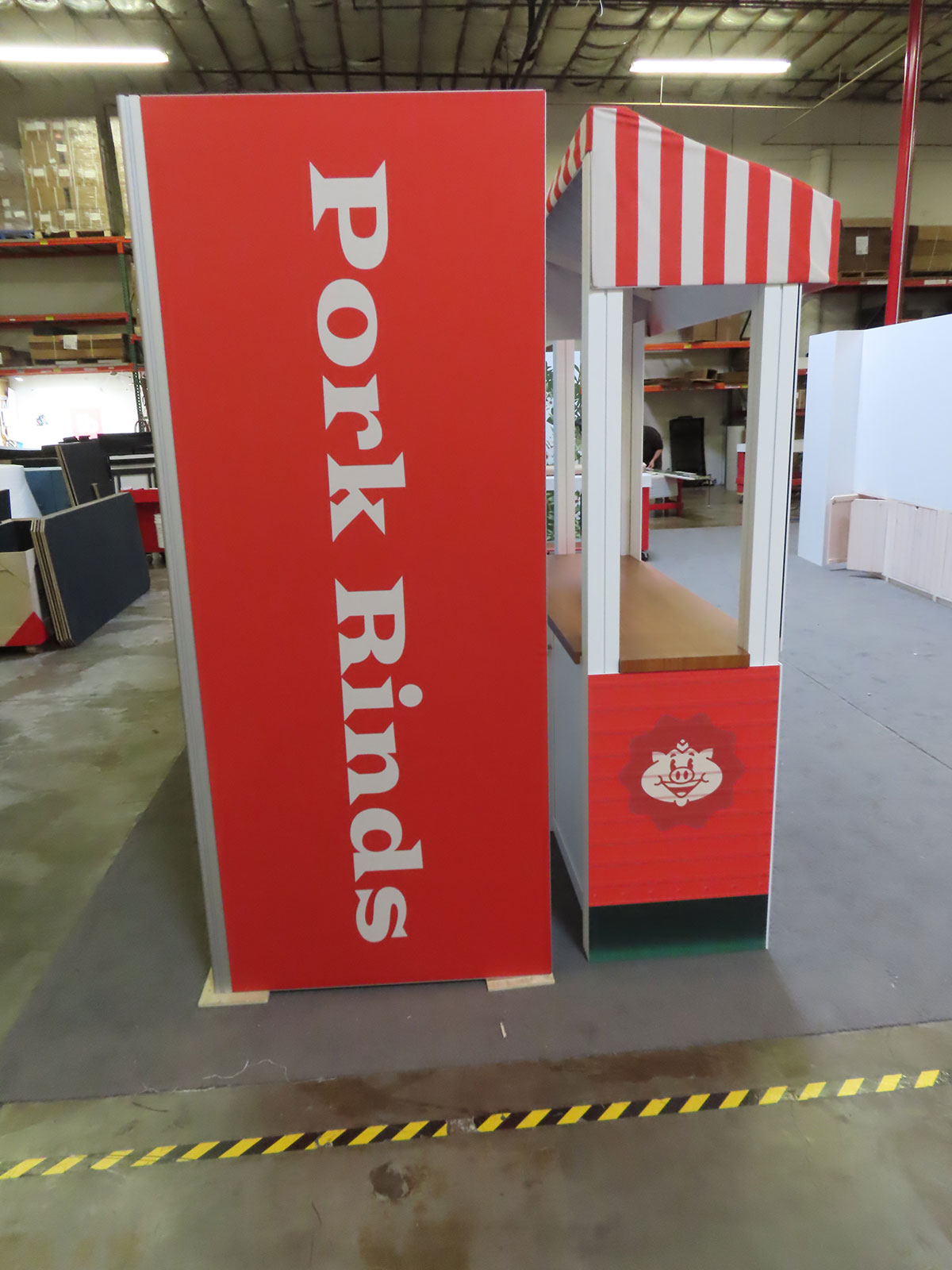Modified GK-2010 Gravitee Modular Inline with Tension Fabric Graphics, Monitor Mount, (2) Shelves, Closet, and Modified MOD-1594 Counter with Awning and Locking Storage [ORD-67303]