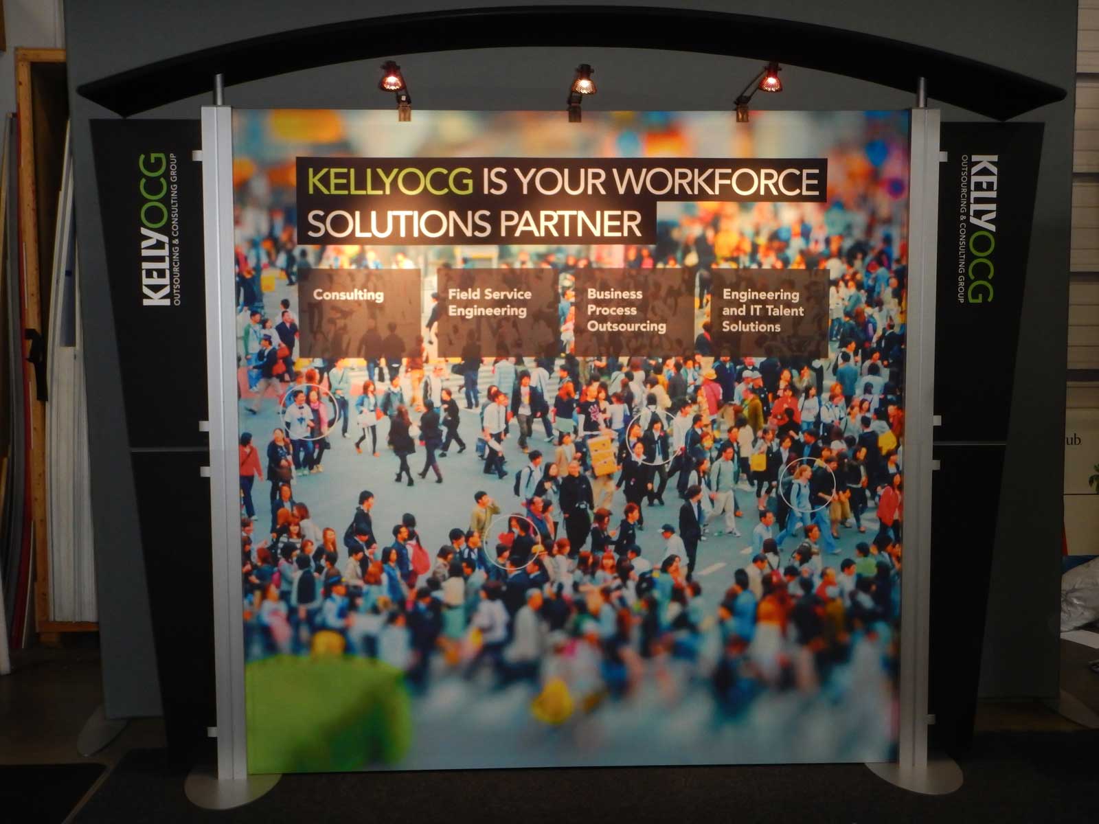 RENTAL: RE-1004 Inline with Arch Canopy, (3) Halogen Arm Lights, Tension Fabric Graphic, and Sintra Wing Graphics